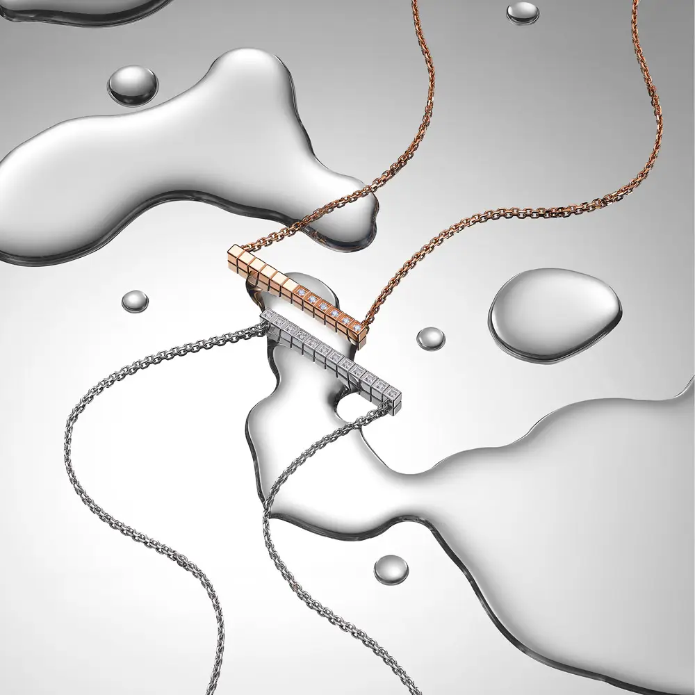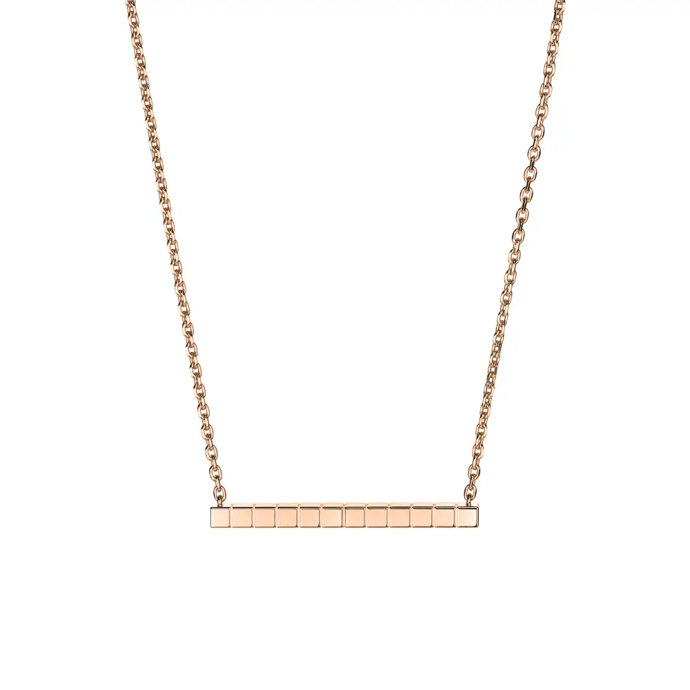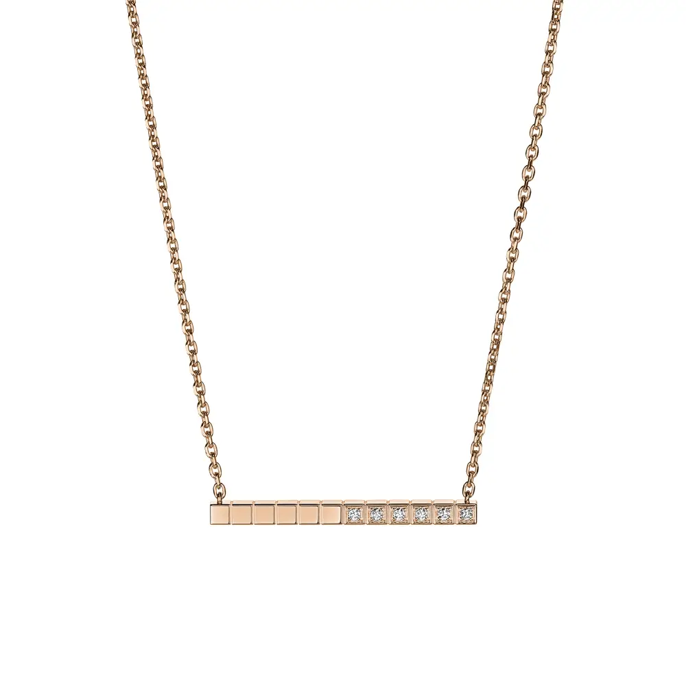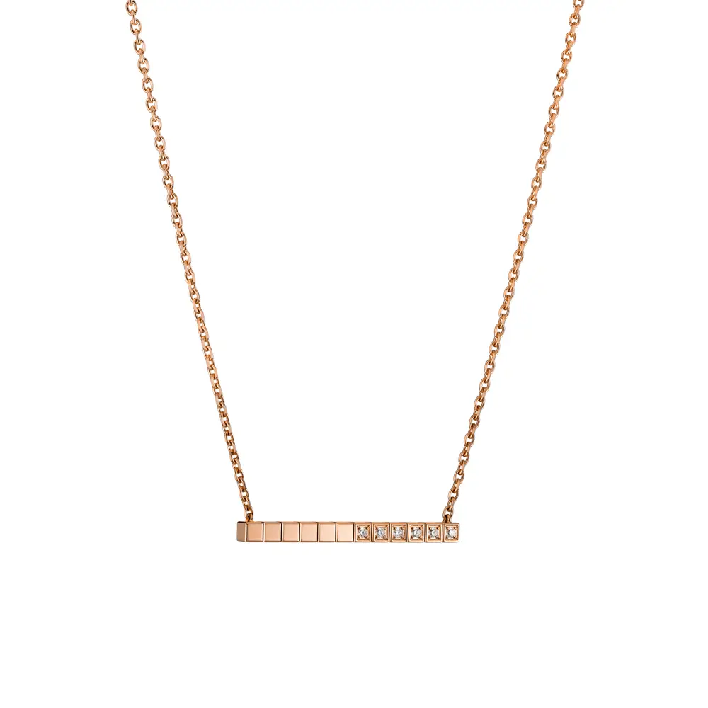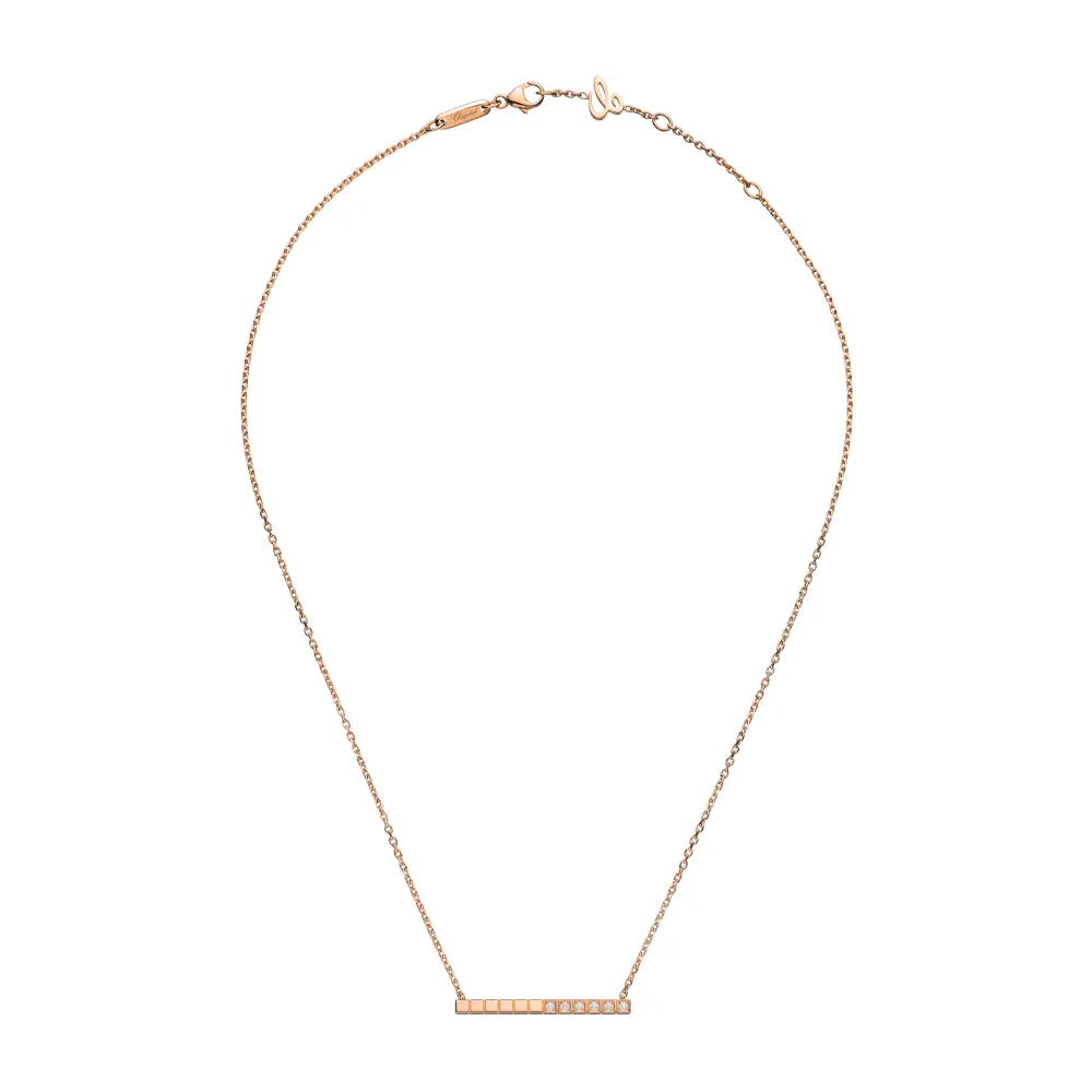 Колье Chopard Ice Cube 817702-5002 воплощает минималистичную элегантность и архитектурную гармонию, характерные для культовой коллекции Ice Cube. Изготовлено из этического розового золота 18 карат, чьё тёплое сияние подчёркивает чистоту и геометрию дизайна.