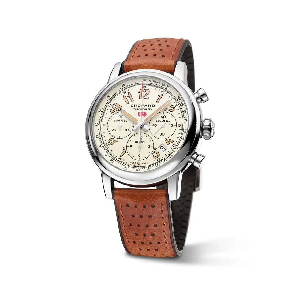 КоллекцияChopard Mille Miglia - это праздник легендарной гонки классических автомобилей, которая проводится с 1927 года по 1000-мильному маршруту через всю Италию. Chopard является официальным партнером и хронометристом гонки с 1988 года, и коллекция носит ее название как дань слиянию механики, элегантности и производительности.