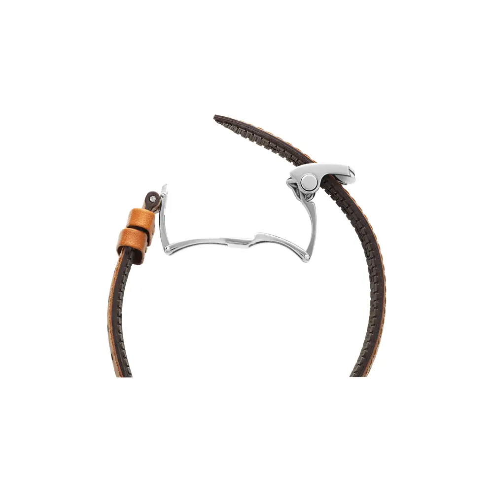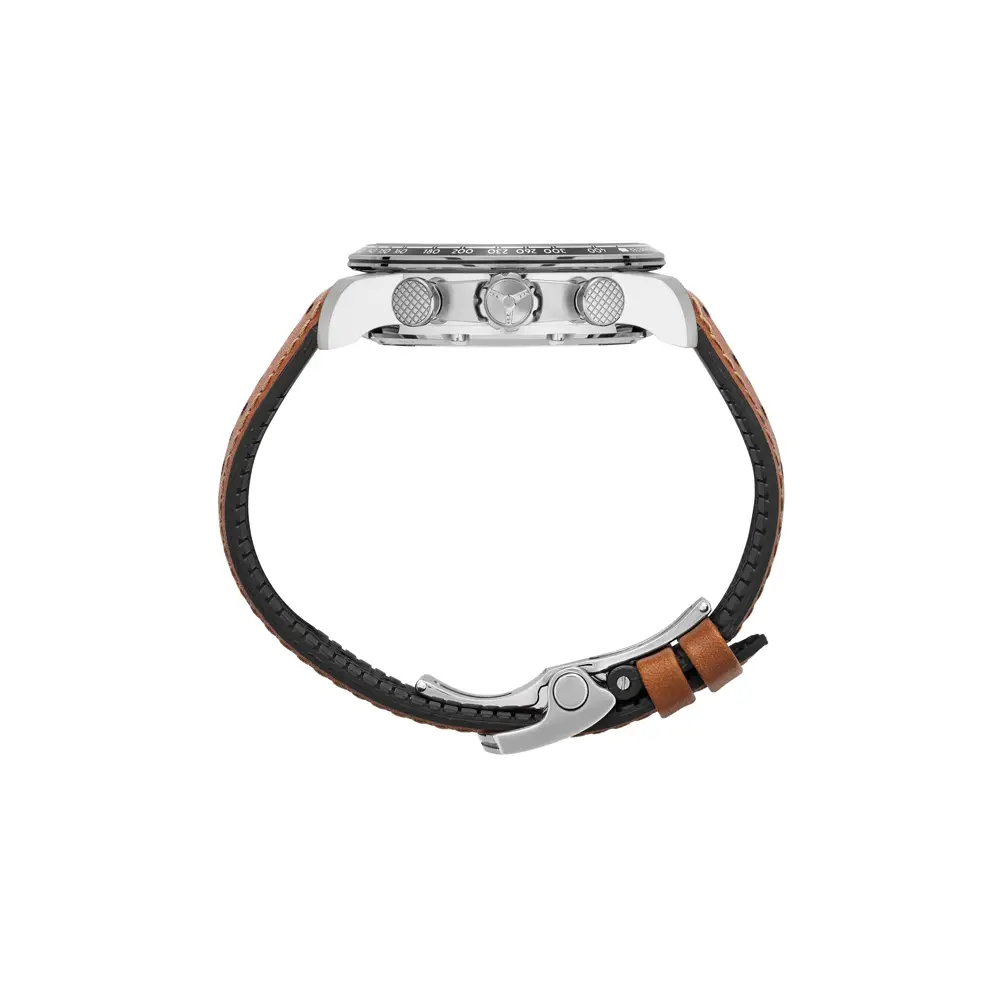 Часы укомплектованы коричневым кожаным ремешком с классической пряжкой, напоминающим салон ретро-автомобиля. Водонепроницаемость до 10 ATM (100 метров) позволяет использовать их в самых разных условиях.