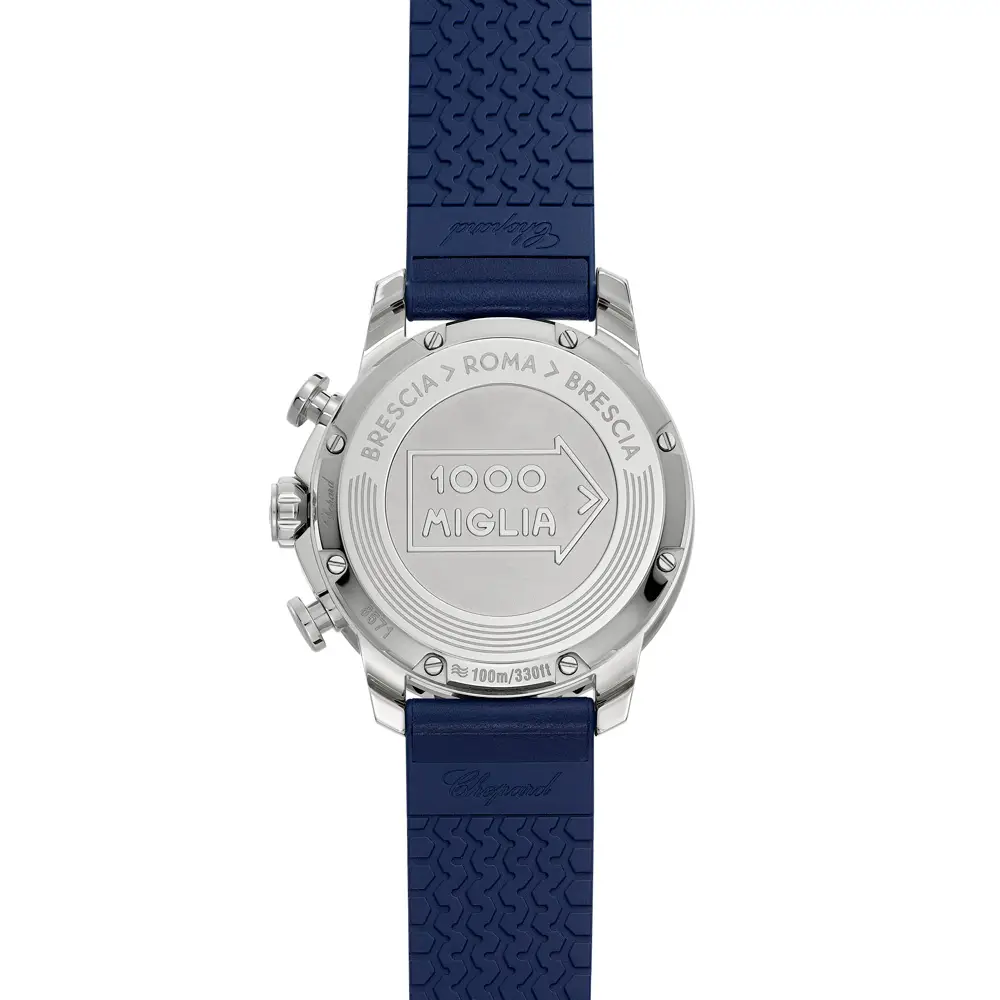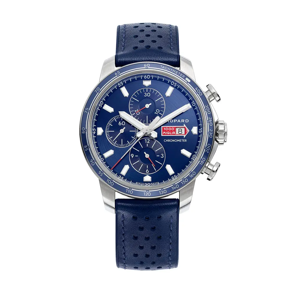 Chopard Mille Miglia GT Azzurro Chrono — идеальные часы для современного мужчины, который ценит автоспортивное наследие, роскошный дизайн и швейцарские технологии.