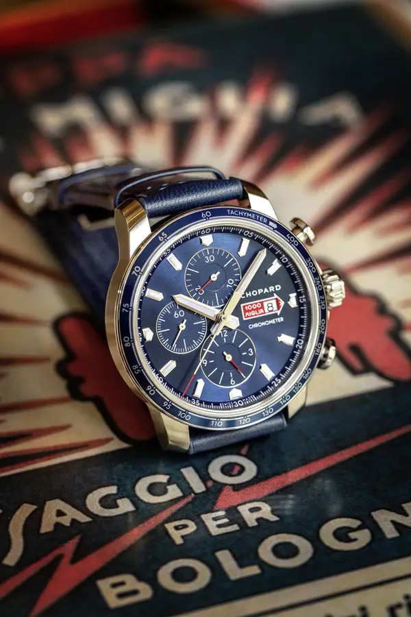 Часы Mille Miglia сочетают в себе эстетику классических автомобилей и высокую часовую технику. В дизайне часто встречаются такие детали, как бортовые приборы, циферблаты, напоминающие тахометры, или ремешки, вдохновленные шинами Dunlop 1960-х годов.