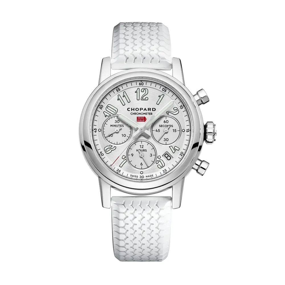 КоллекцияChopard Mille Miglia - это праздник легендарной гонки классических автомобилей, которая проводится с 1927 года по 1000-мильному маршруту через всю Италию. Chopard является официальным партнером и хронометристом гонки с 1988 года, и коллекция носит ее название как дань слиянию механики, элегантности и производительности.