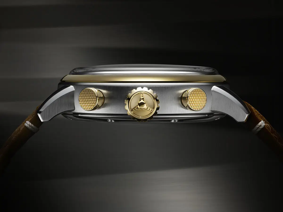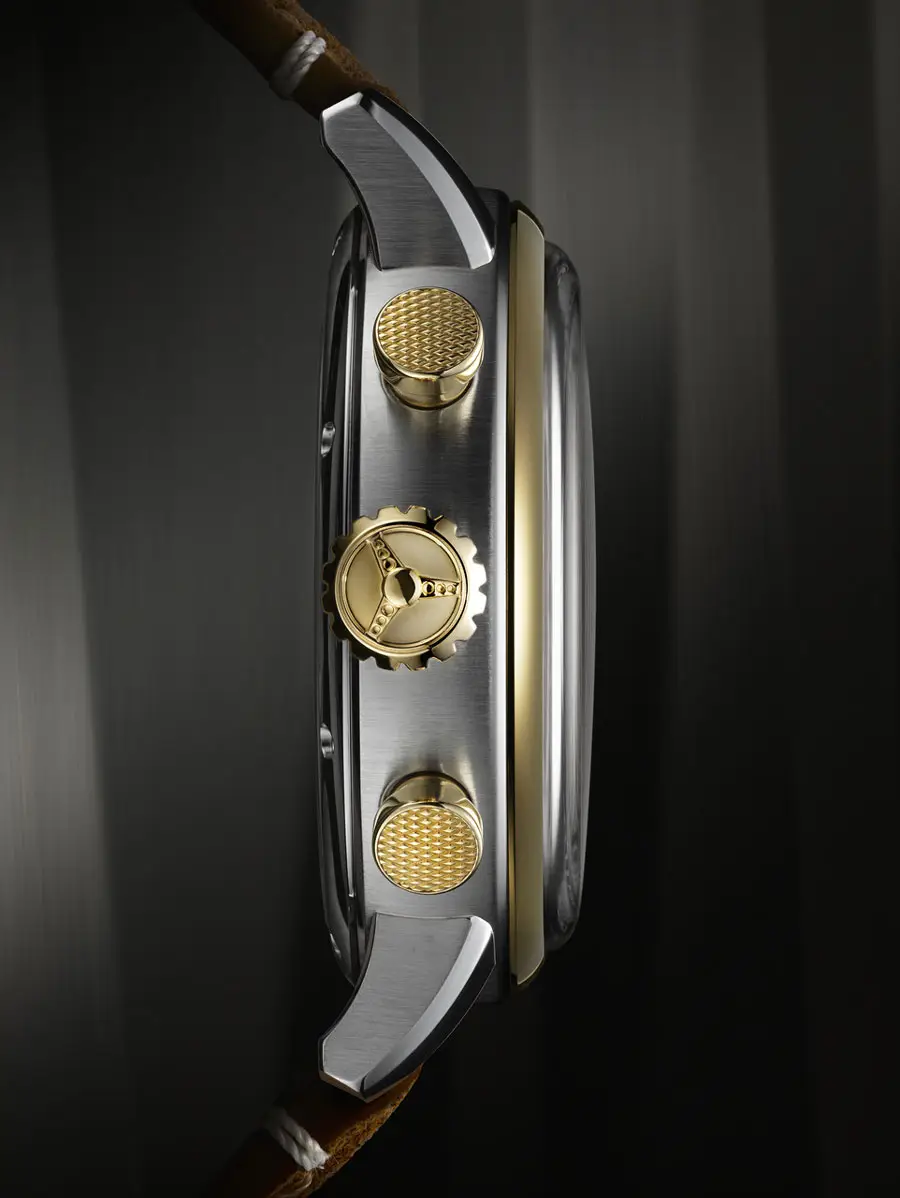 Круглый корпус диаметром 40,5 мм выполнен из нержавеющей стали, а безель из жёлтого золота 18 карат придаёт роскошный акцент. Сапфировое стекло защищает от царапин, а водонепроницаемость 5ATM / 50M делает часы надёжными в повседневной носке и в путешествиях.