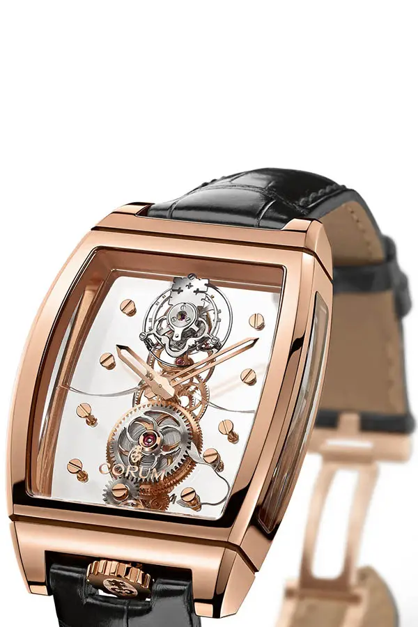 Corum Golden Bridge Tourbillon Panoramique — это не просто часы, а исключительное воплощение инноваций, дизайна и швейцарских часовых традиций, сразу привлекающее внимание ценителей и любителей роскоши.