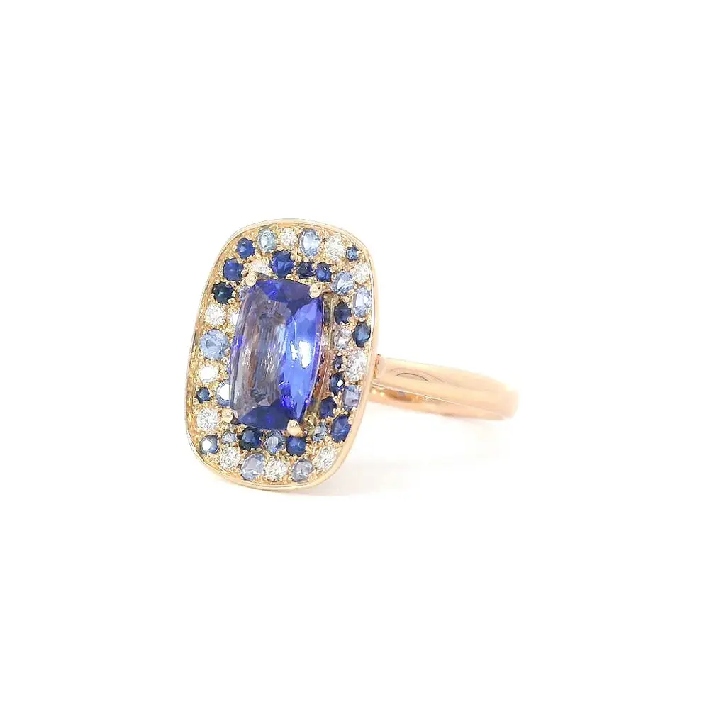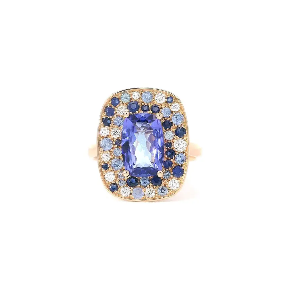 Цветовая гармония танзанитов, сапфиров и бриллиантов в розовом золоте