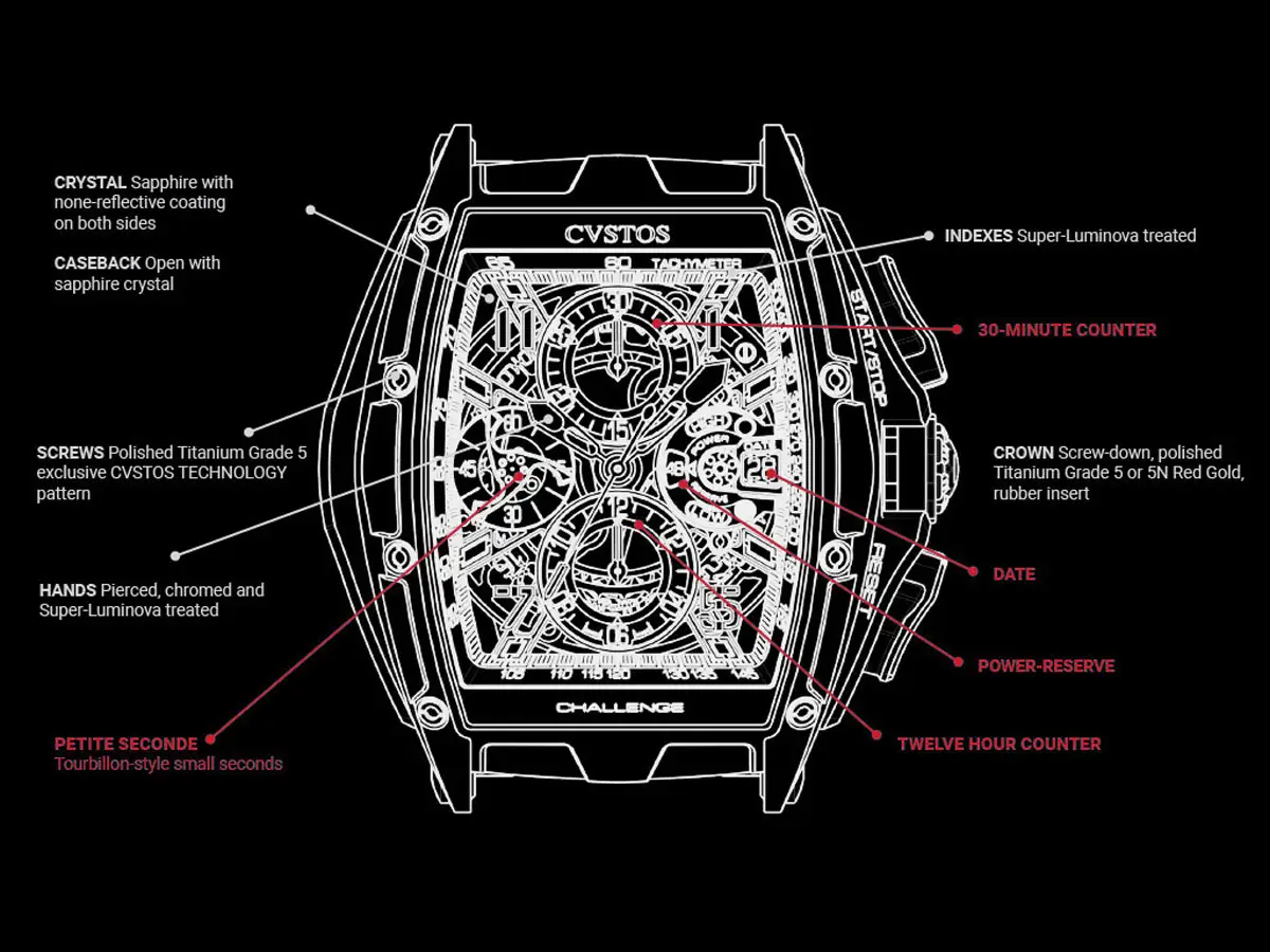 CVSTOS Chrono Black Steel/Black-Red B00107.4502005