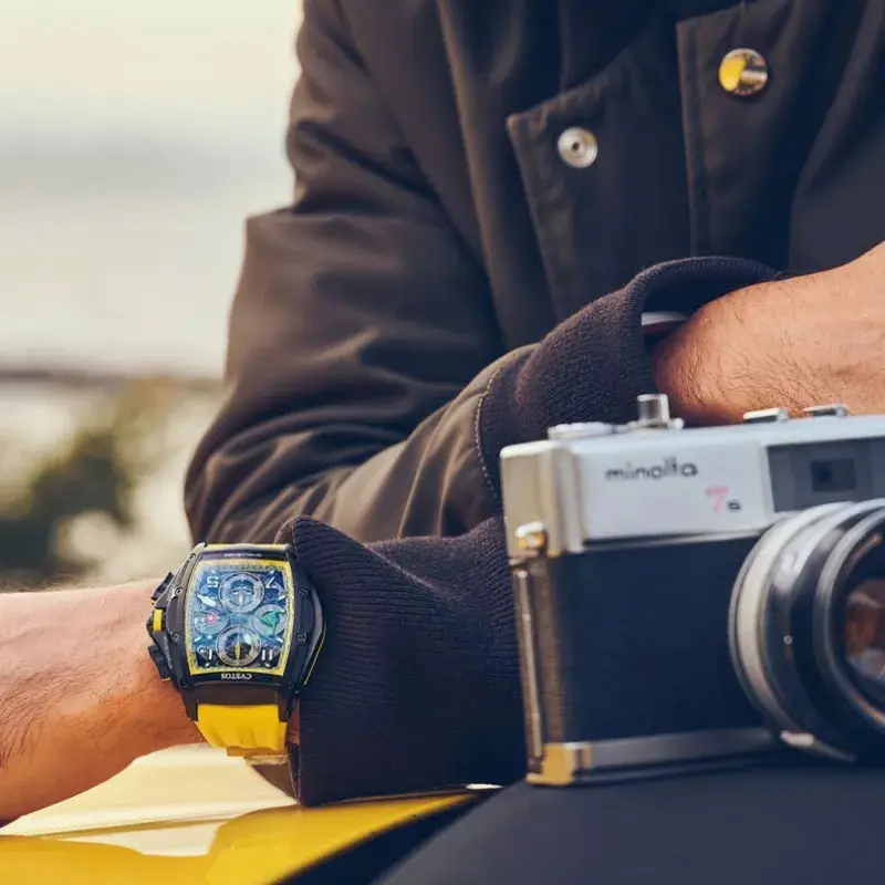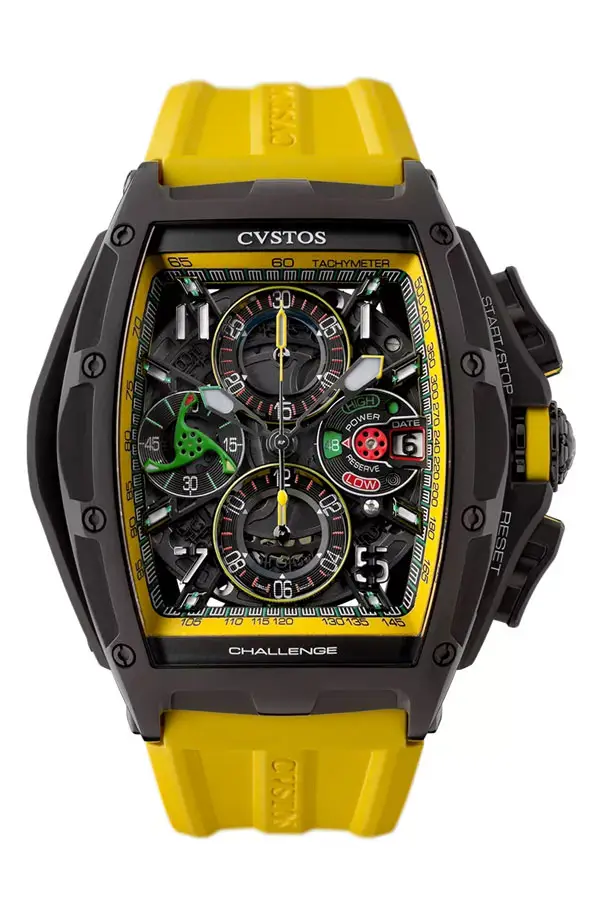 Мужские спортивные часы Cvstos из серии Challenge - это идеальное сочетание совершенного технического дизайна и свежего образа, созданное специально для тех, кто не боится выделяться из толпы. Яркий желтый ремешок отлично контрастирует с темным корпусом из стали и черного PVD-покрытия. Квадратный циферблат оснащен хронографом и индикатором даты.