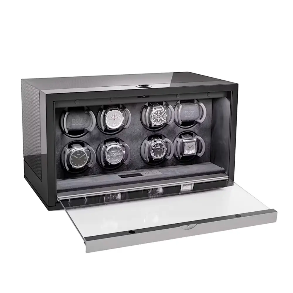 С программируемыми режимами вращения и питанием от сети или батарей устройство сочетает удобство и универсальность. Buben & Zorweg NEO 8 Carbon Matte — это воплощение технической роскоши и изысканного дизайна, созданное для истинных ценителей часов.