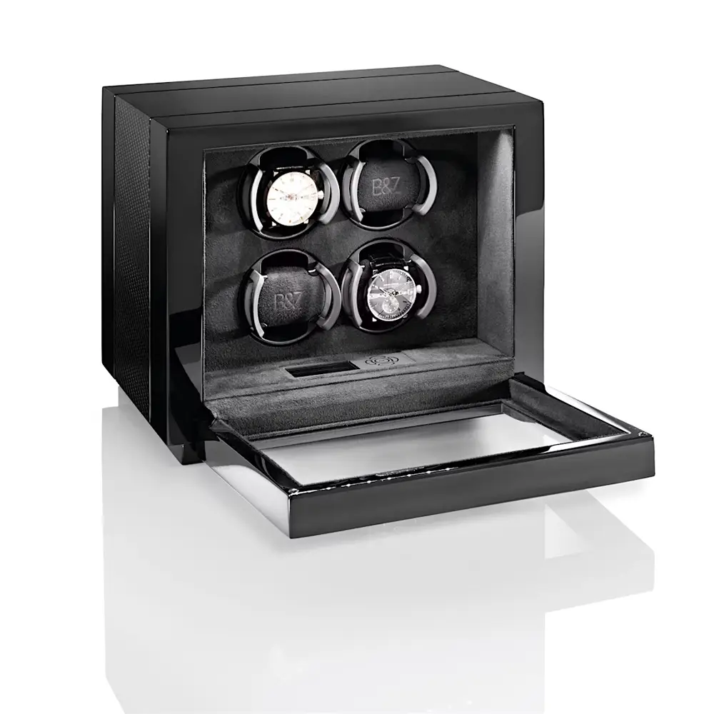 Натяжное устройство Buben & Zorweg VANTAGE 4 Carbon — это роскошное решение для безопасного и элегантного хранения до четырёх автоматических часов. Его современный дизайн сочетает глянцевый чёрный лак с карбоновыми вставками, создавая образ, в котором спортивный характер гармонично сочетается с изысканностью. Стеклянная крышка позволяет эффектно демонстрировать коллекцию, а замковый механизм и безупречное качество сборки обеспечивают максимальную защиту.
