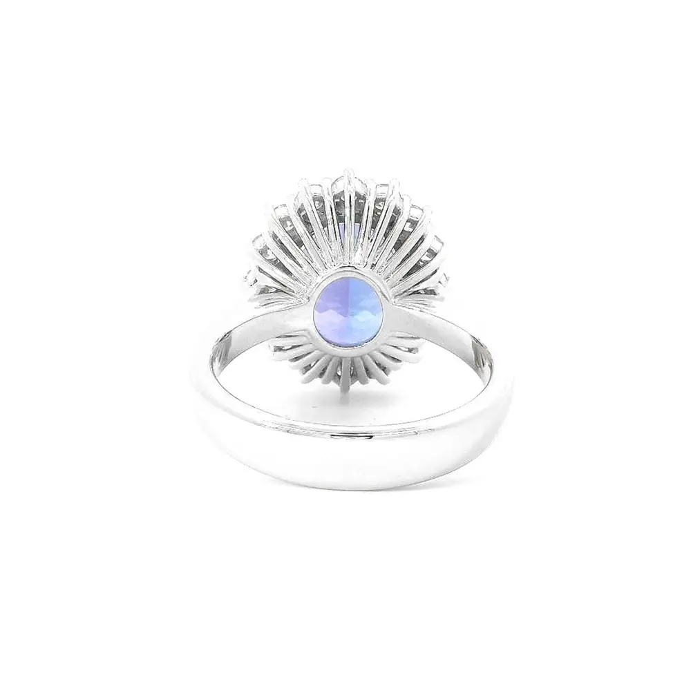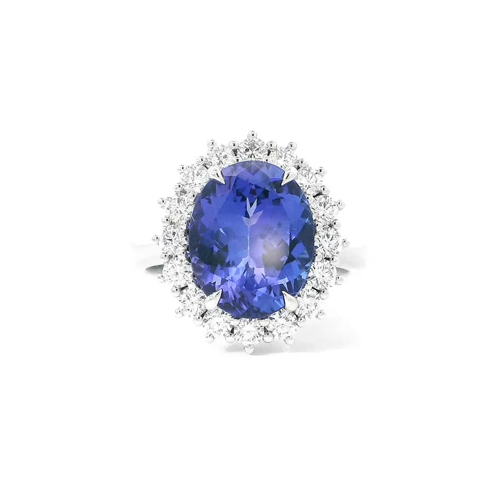 Эксклюзивное кольцо из белого золота с танзанитом и бриллиантовым блеском