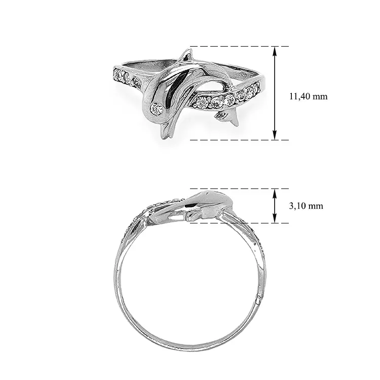 Эксклюзивное золотое кольцо в форме дельфина с фианитами