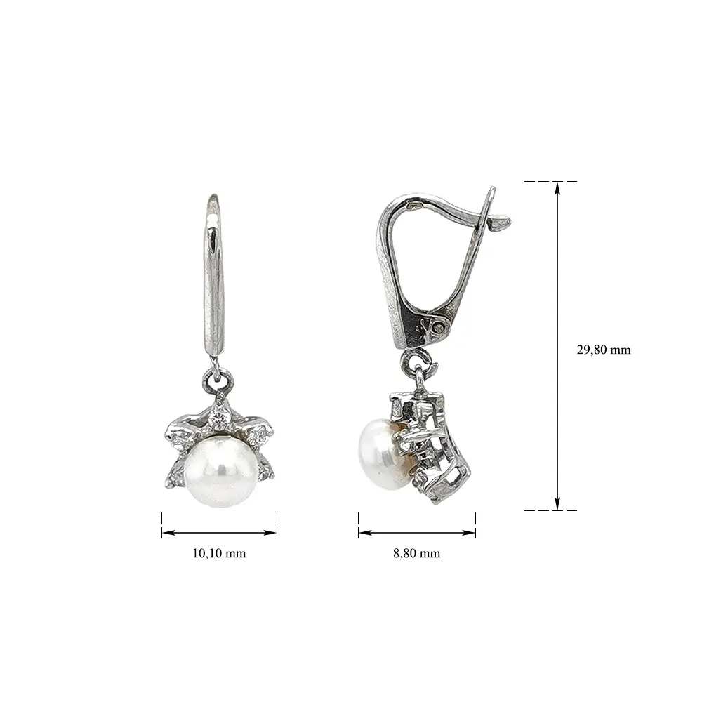 Элегантные серьги из белого золота с жемчугом и фианитами