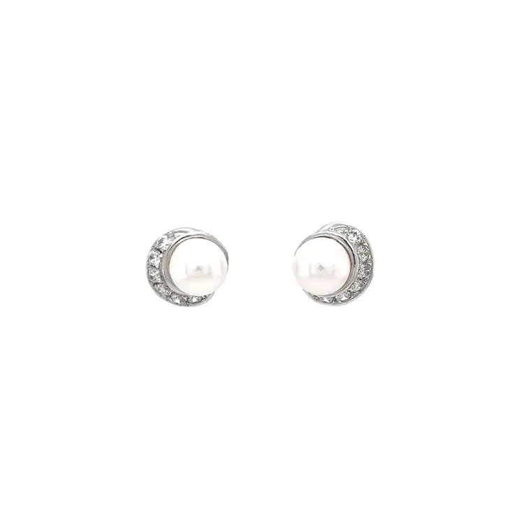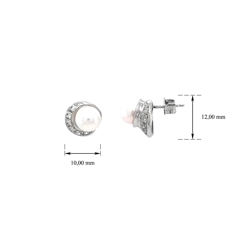 Элегантные серьги из белого золота с жемчугом и фианитами