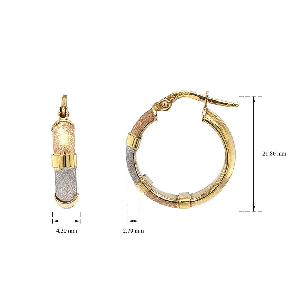 Элегантные серьги-кольца из трёхцветного золота