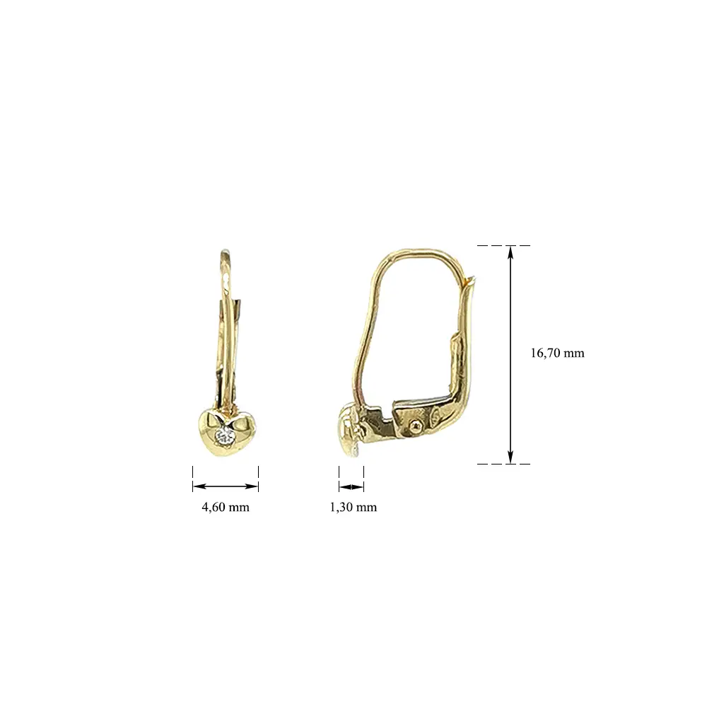 Элегантные золотые серьги в форме сердца с фианитами