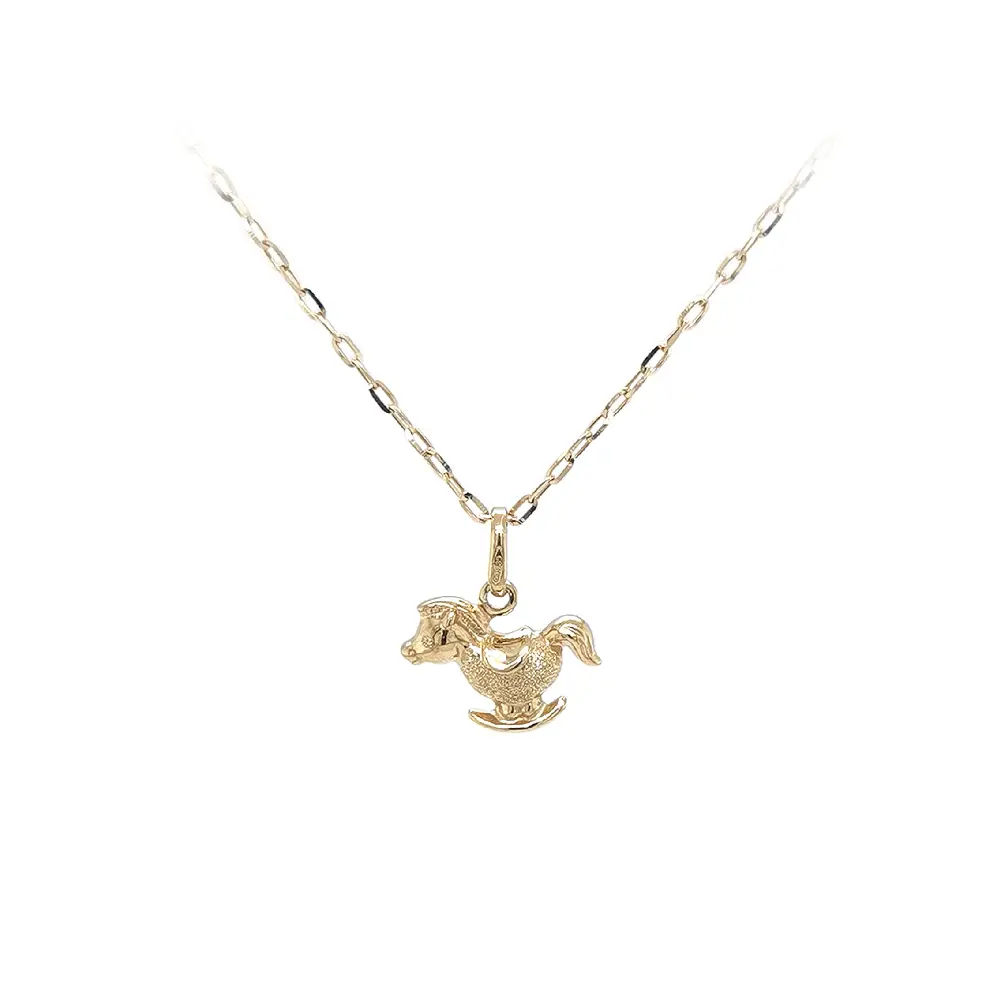 Элегантный кулон в виде скачущей лошади из золота с блестящей и матовой отделкой