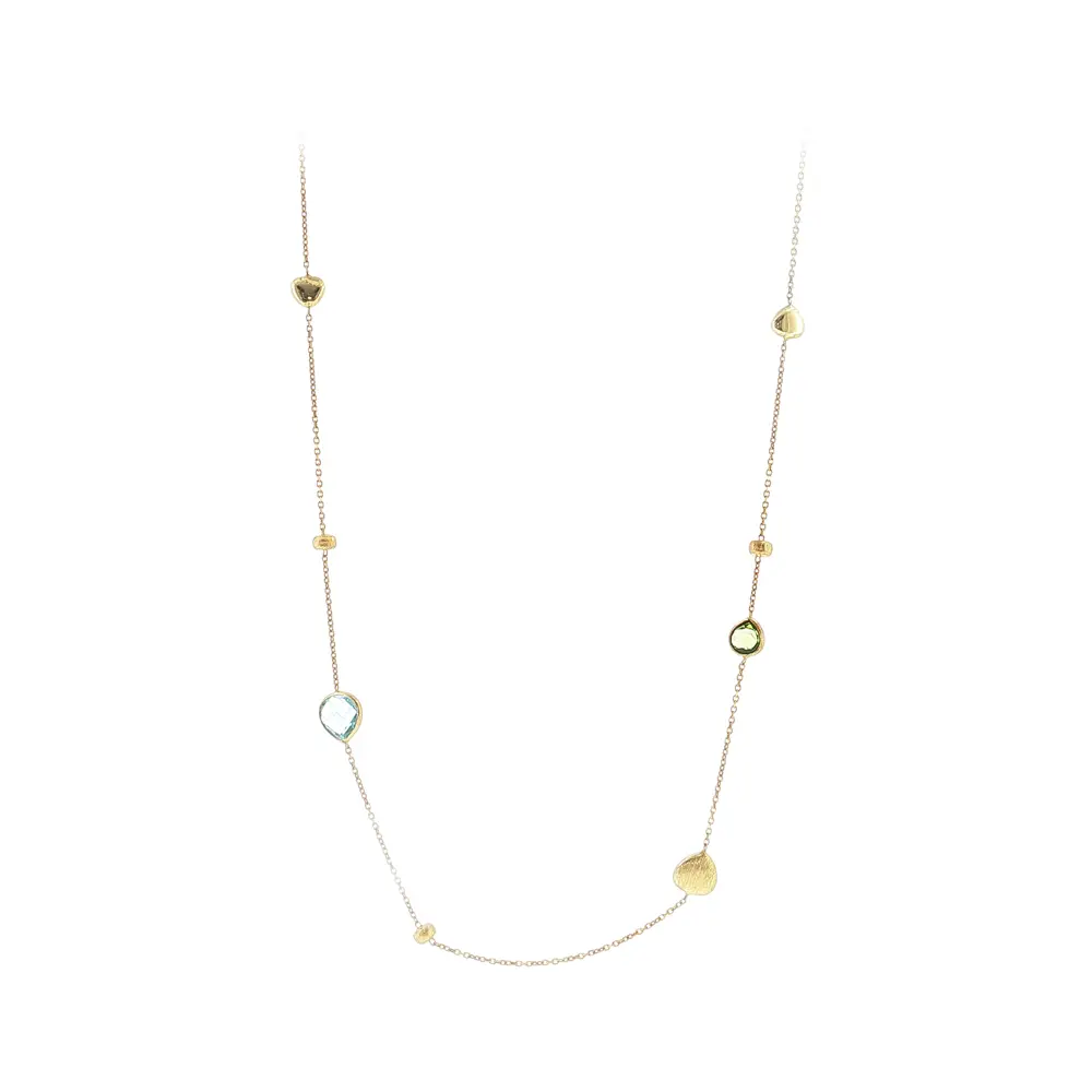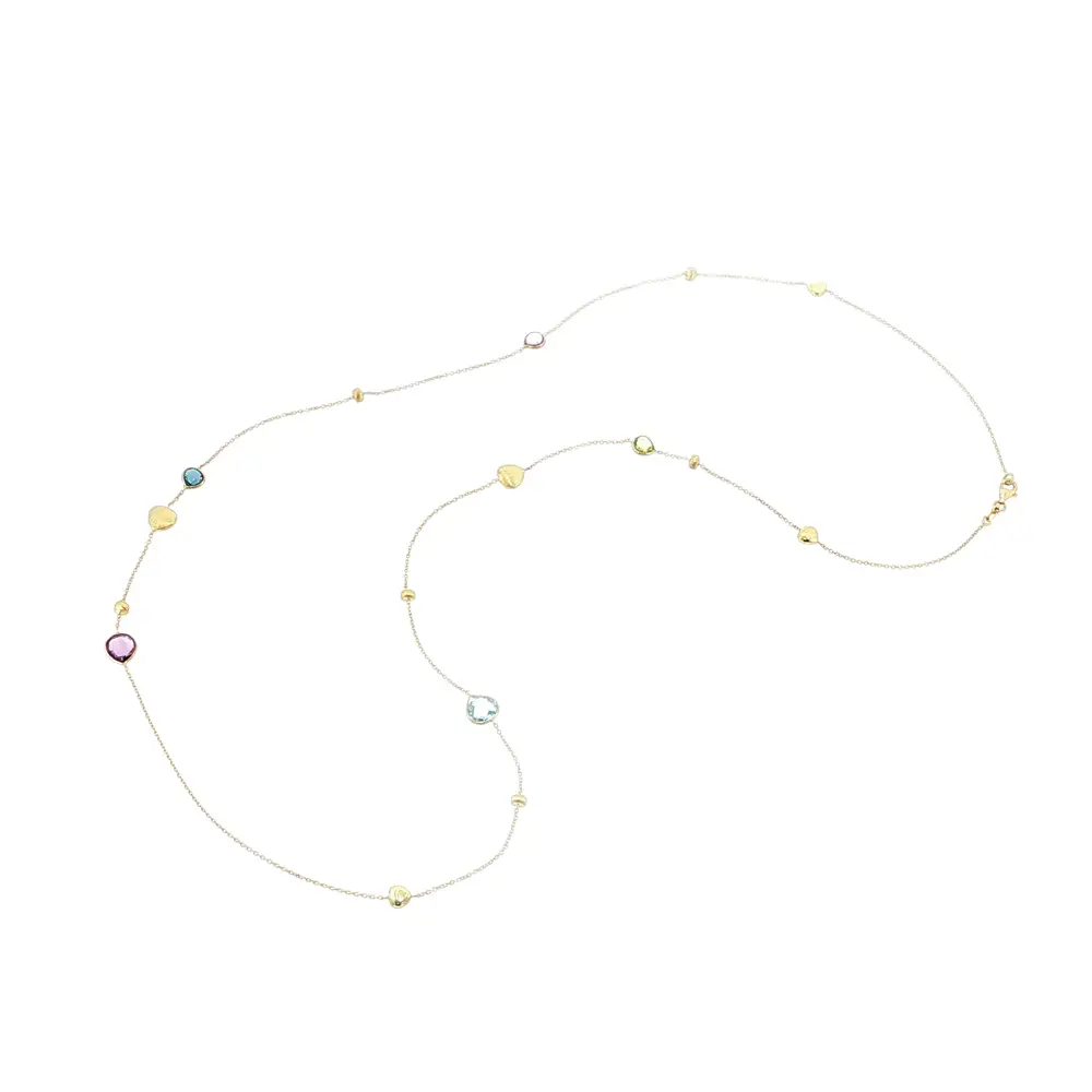 Элегантное колье из золота 14 карат с цветными камнями и сердечками