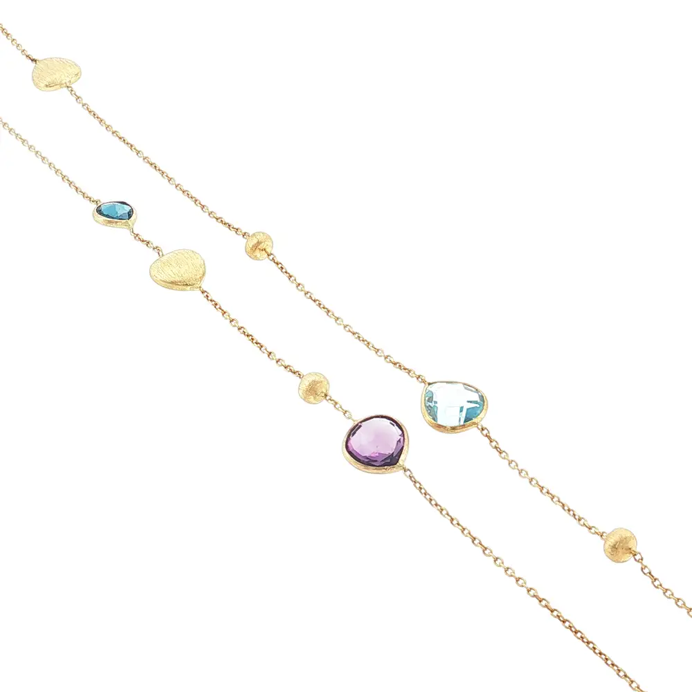 Побалуйте себя украшением, подчеркивающим вашу индивидуальность, или порадуйте близких особенным подарком. Золотое колье с цветными камнями и сердечками — символ игривой элегантности, женственности и неподвластного времени стиля.