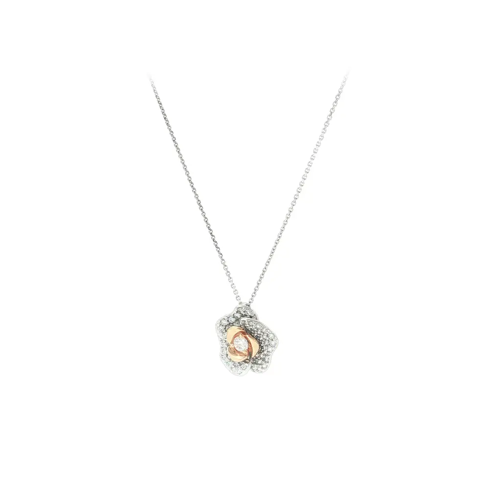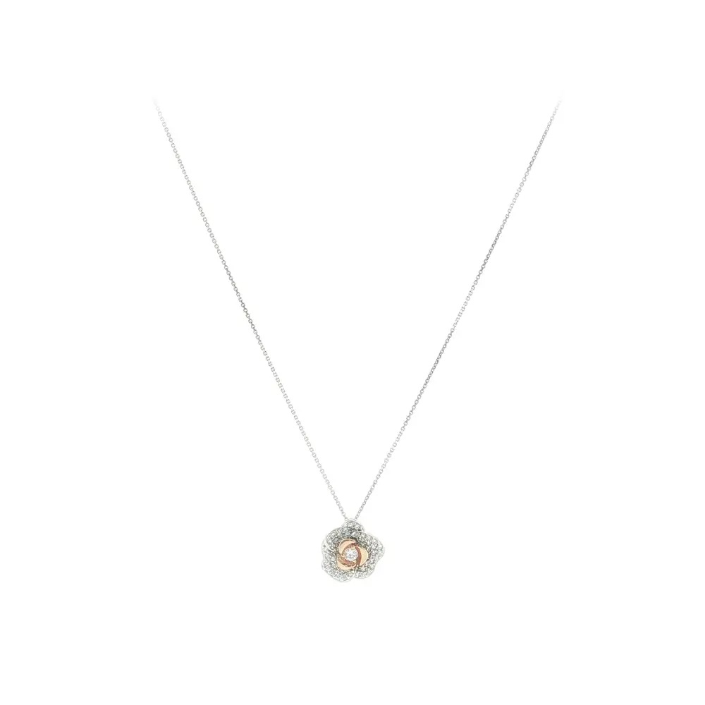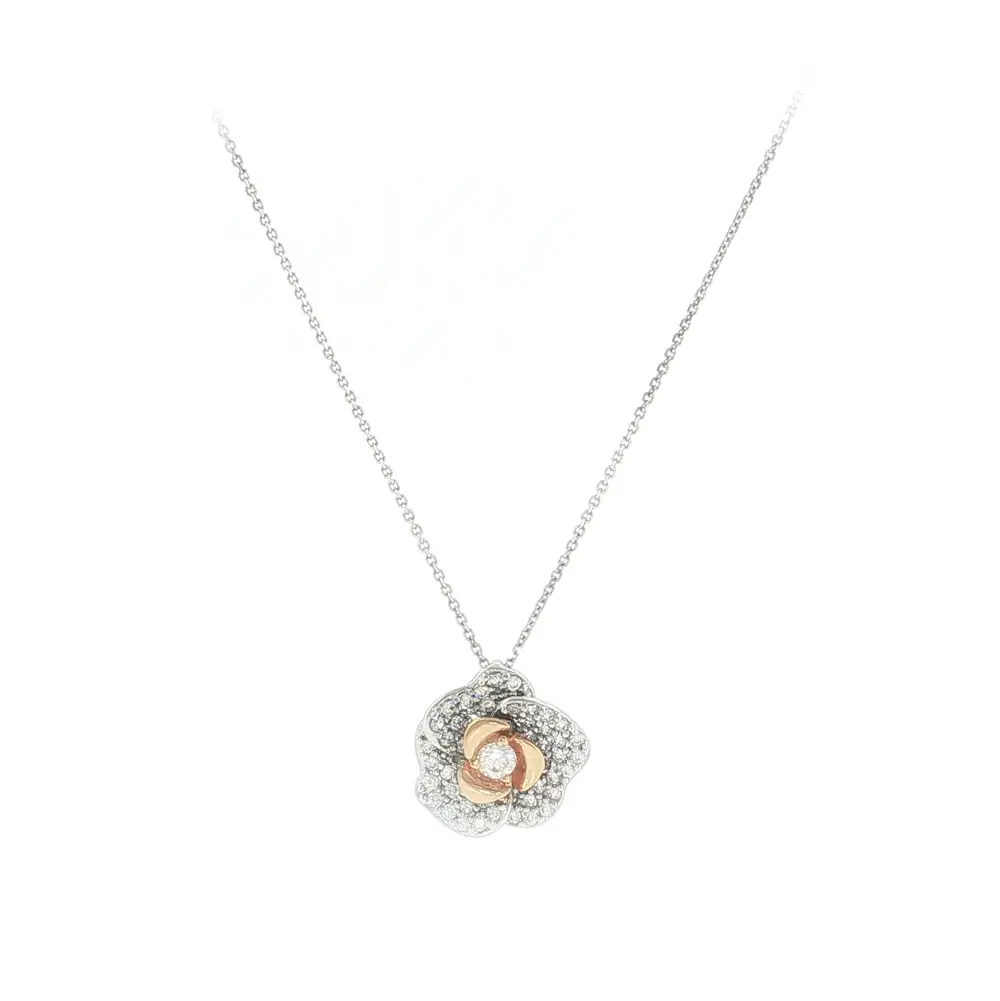 Элегантное ожерелье из белого золота с цветочным кулоном и цирконами