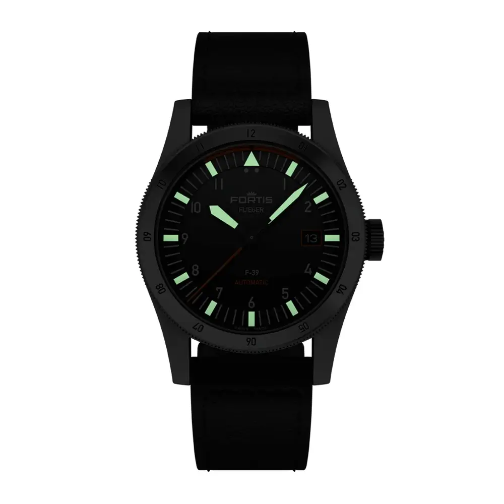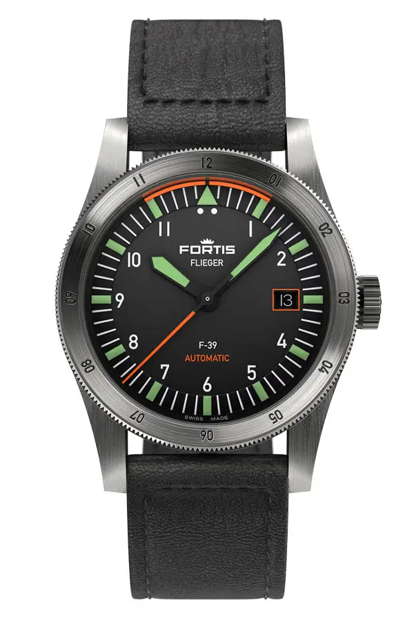Внутри установлен автоматический калибр UW-30 с запасом хода 38 часов. Кожаный ремешок в авиаторском стиле подчеркивает характер модели и обеспечивает комфорт. Fortis Flieger F-39 Automatic — это идеальное сочетание традиций, производительности и стиля для тех, кто ценит точность и дух приключений.