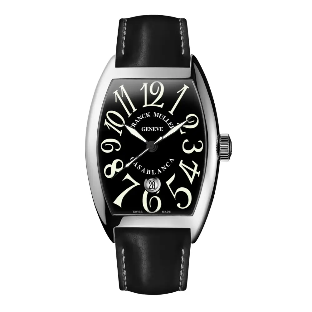 Casablanca является одним из самых харизматичных классических творений Franck Muller — сочетая непринуждённую элегантность, ар-деко эстетику и характерный «cinematic» дух путешествий и городской жизни. Матовый чёрный циферблат с фирменной типографикой обеспечивает превосходную читаемость, а дата на 6 часах гармонично вписана в композицию.
