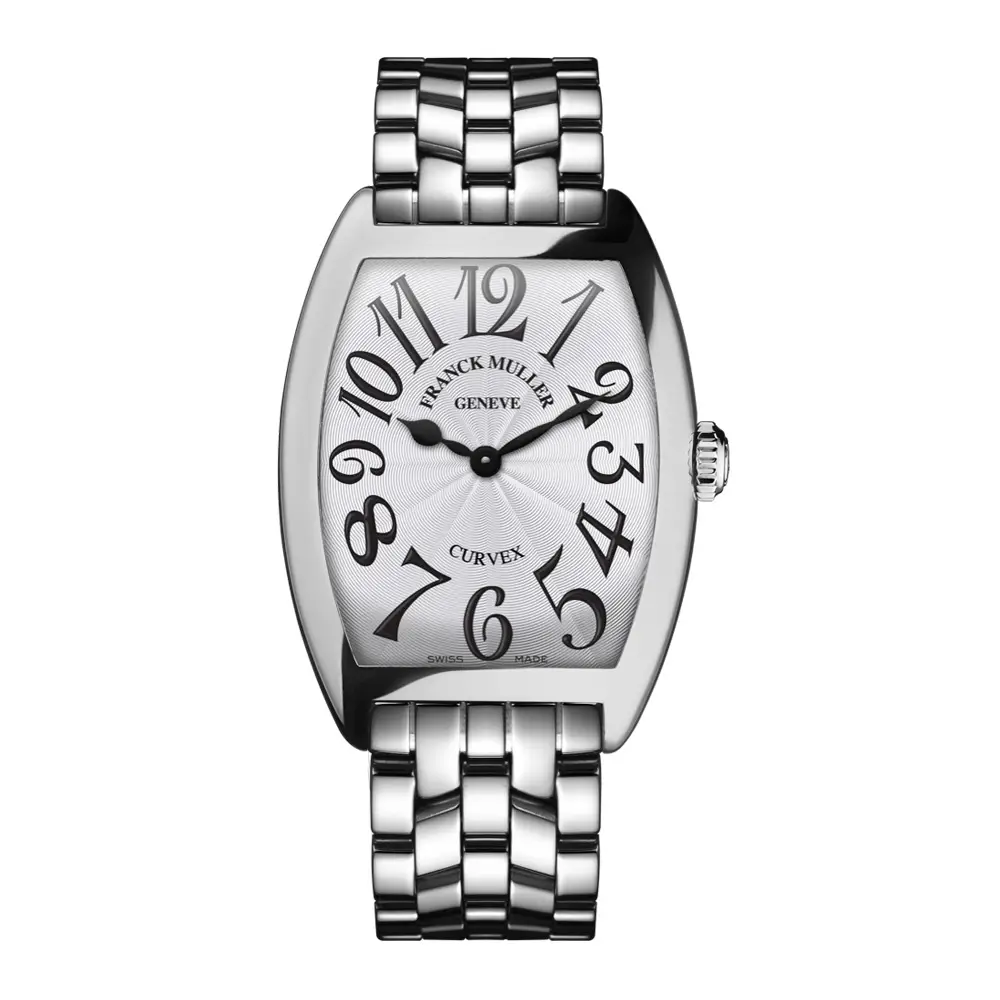 Модель Franck Muller Cintrée Curvex является одной из самых узнаваемых форм бренда. Изогнутый корпус tonneau, выразительные цифры и изысканный sun guilloché циферблат создают внестилевую эстетику с тонкими мотивами ар-деко.