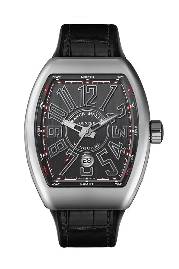Franck Muller Vanguard V 45 SC DT сочетает в себе современный дизайн и швейцарское часовое мастерство. Его серый аналоговый циферблат с фирменными цифрами Franck Muller придаёт часам индустриальный шарм.