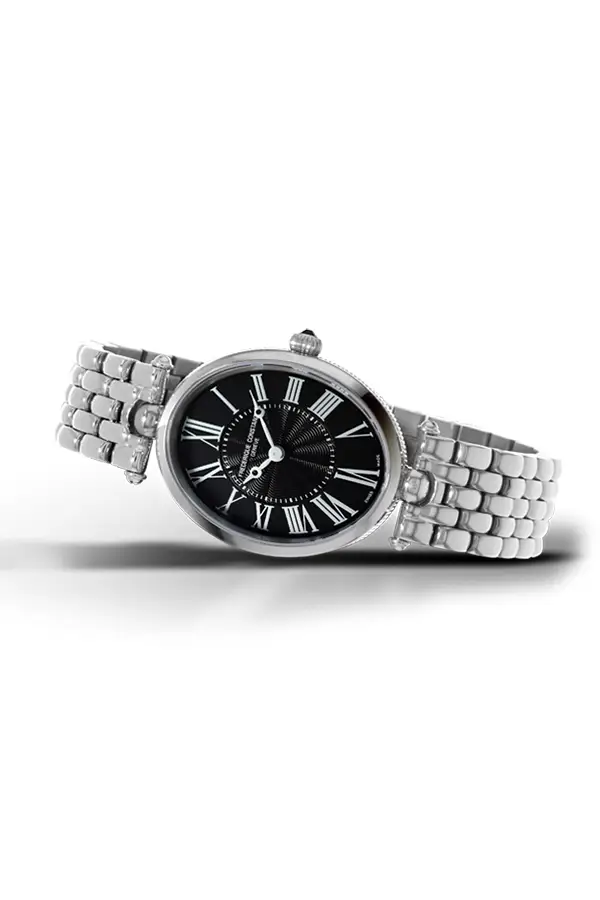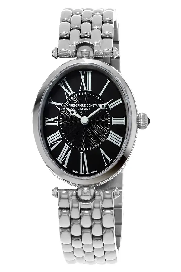 Frédérique Constant Classics Art Deco FC-200MPB2V6B — это изысканные женские часы, вдохновленные классической эстетикой 1920‑х годов. Их овальный корпус из нержавеющей стали размером 25 × 30 мм смотрится утончённо и элегантно, а черный циферблат с римскими цифрами придает модели вневременной характер. Сапфировое стекло надежно защищает циферблат от царапин.