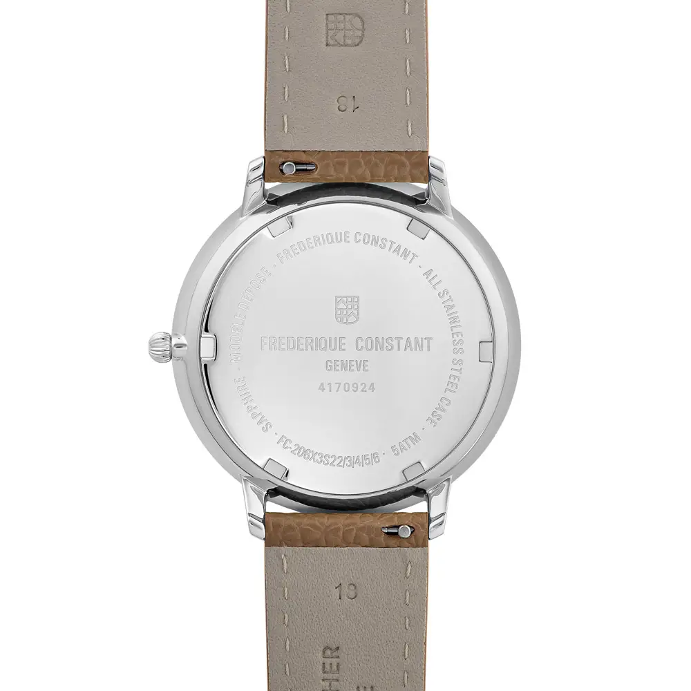 Внутри установлен швейцарский кварцевый механизм FC-206, отличающийся надёжностью и точностью. Кожаный ремешок обеспечивает комфорт при ношении, а водозащита 5 ATM делает часы практичными для повседневного использования. Модель FC-206RN3S6 создана для ценителей традиционной эстетики и утончённых часовых усложнений.
