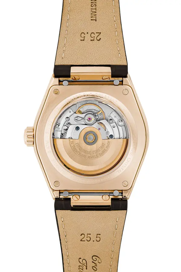 Внутри установлен автоматический механизм FC‑303, работающий с частотой 28 800 полуколебаний в час, с резервом хода около 38 часов и сертификацией COSC, что гарантирует хронометрическую точность. Также имеется дата на позиции 3 часов.