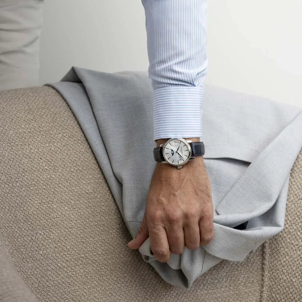 Часы созданы для универсального ношения – от повседневной элегантности до официальных мероприятий. Сапфировое стекло с антибликовым покрытием обеспечивает отличную читаемость при любом освещении, а классический кожаный ремешок подчёркивает их стиль. Водонепроницаемость 50 м (5 ATM) справляется с дождём и повседневным контактом с водой.
