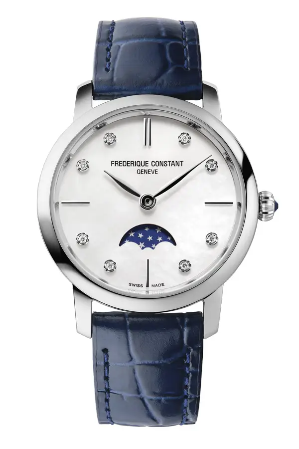 Frederique Constant Slimline Ladies Moonphase FC-206MPWD1S6 — идеальный выбор для женщин, ценящих элегантность, надёжность и стиль.