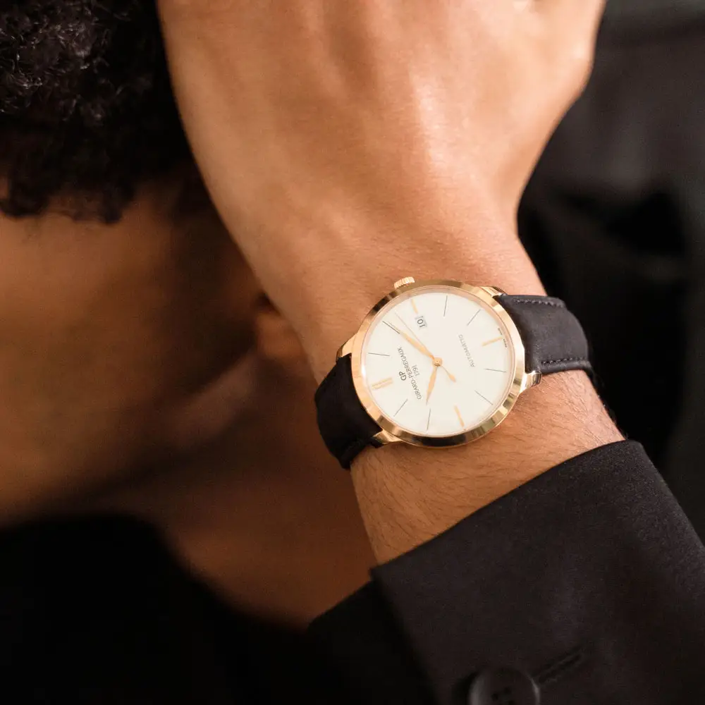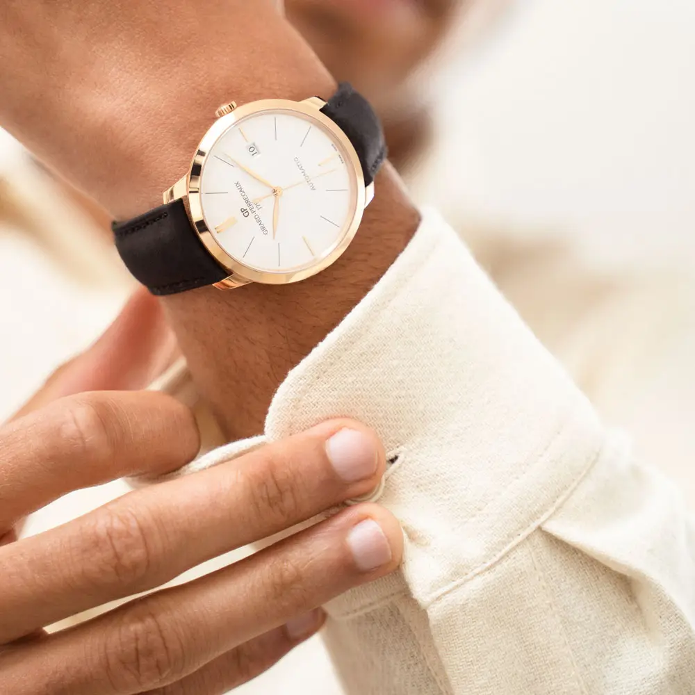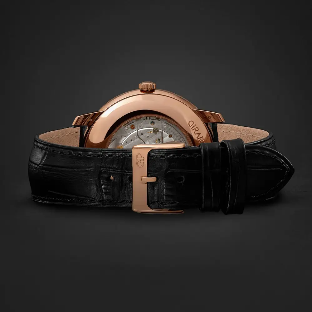 Дизайн моделей чист и изыскан - тонкий круглый корпус, плавно изогнутое сапфировое стекло, узкие индексы и элегантные стрелки создают сбалансированную и утонченную эстетику. В основе часов - мануфактурные механизмы Girard-Perregaux, часто оснащенные такими усложнениями, как дата, фазы луны или годовой календарь.