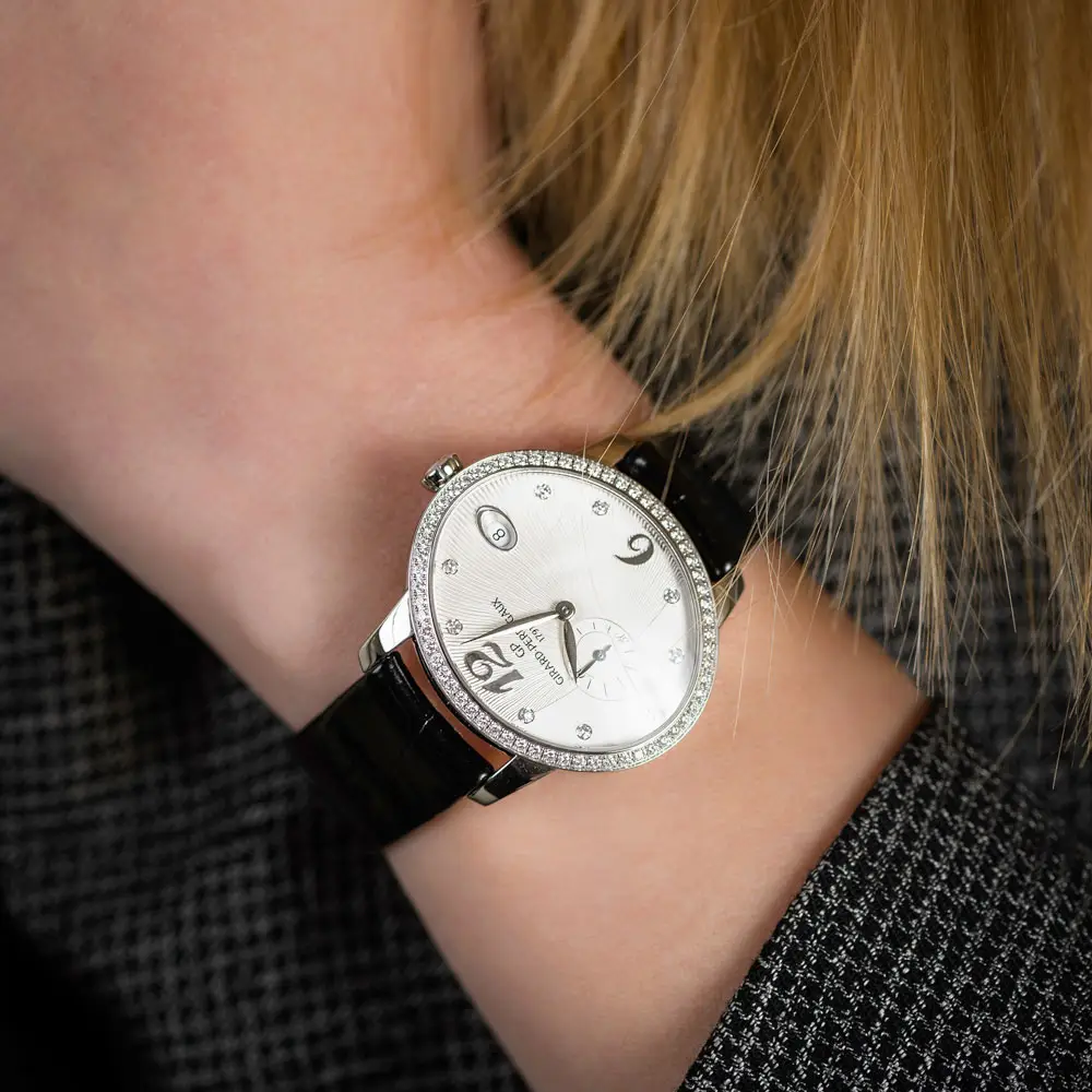 Cat's Eye - престижная женская коллекция Girard-Perregaux, сочетающая в себе утонченную эстетику и высокое часовое мастерство. Ее отличительной особенностью является мягко вытянутый овальный корпус, напоминающий форму кошачьего глаза - отсюда и название коллекции. Этот элегантный дизайн отличается женственностью, изяществом и неповторимым шармом.
