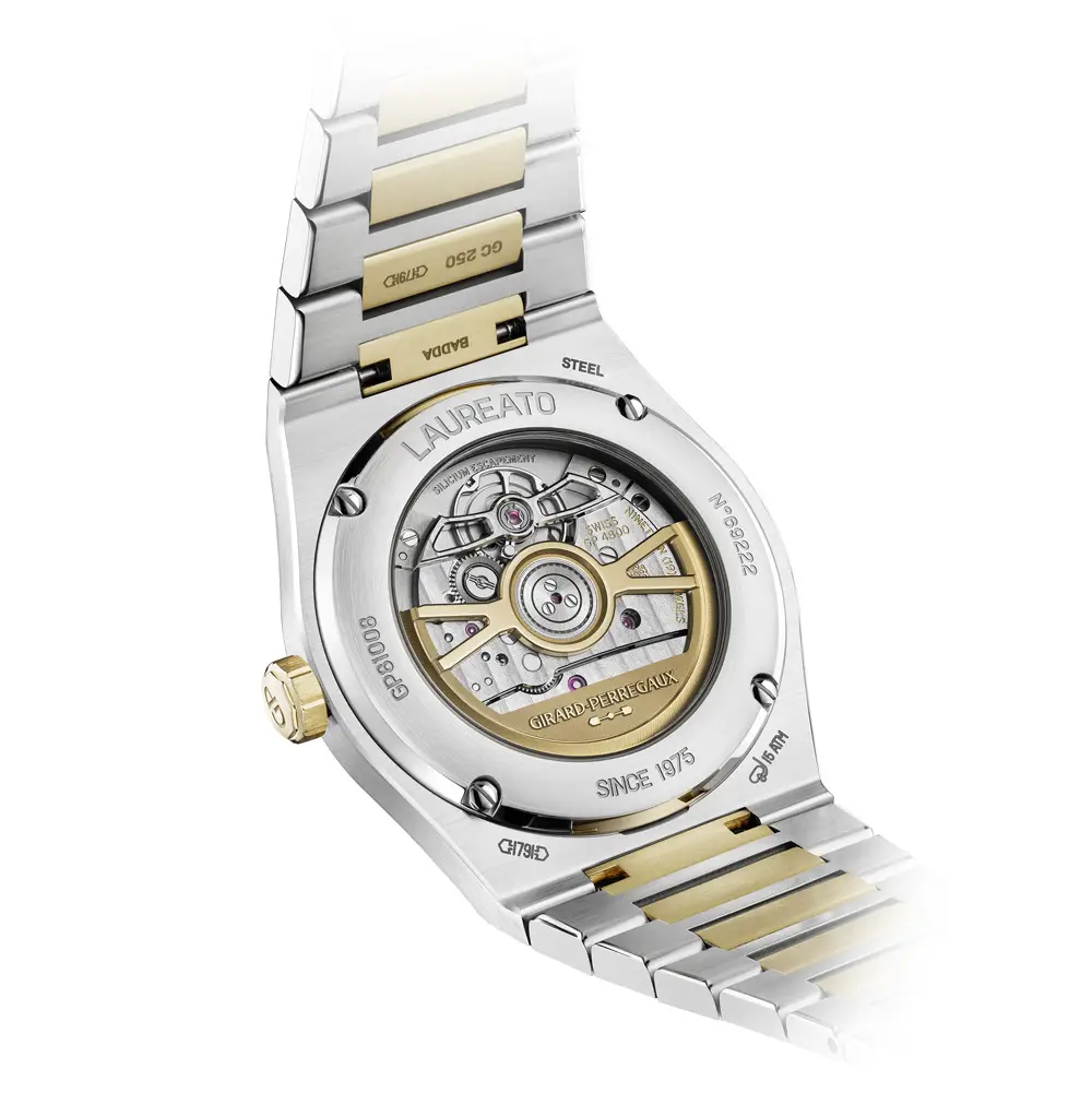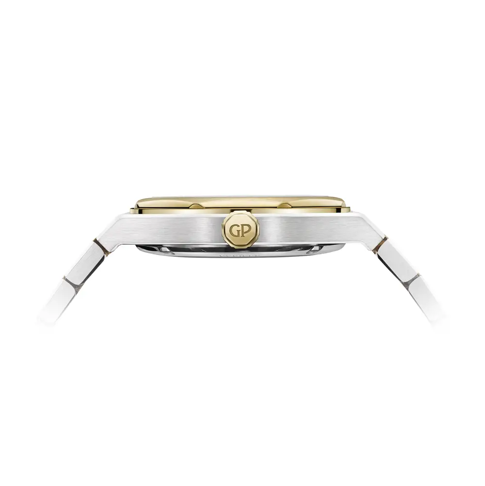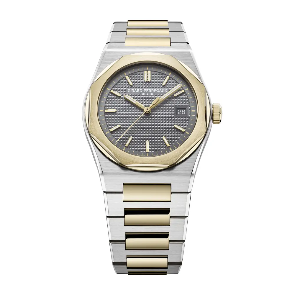 Модель Girard-Perregaux Laureato 50th Anniversary отмечает 50-летие культовой линии, сочетающей точность швейцарского механизма и вечную эстетику. Корпус диаметром 39 мм выполнен из нержавеющей стали и 18-каратного жёлтого золота, с интегрированным двухцветным браслетом и фирменным восьмиугольным безелем, что придаёт модели узнаваемый характер.