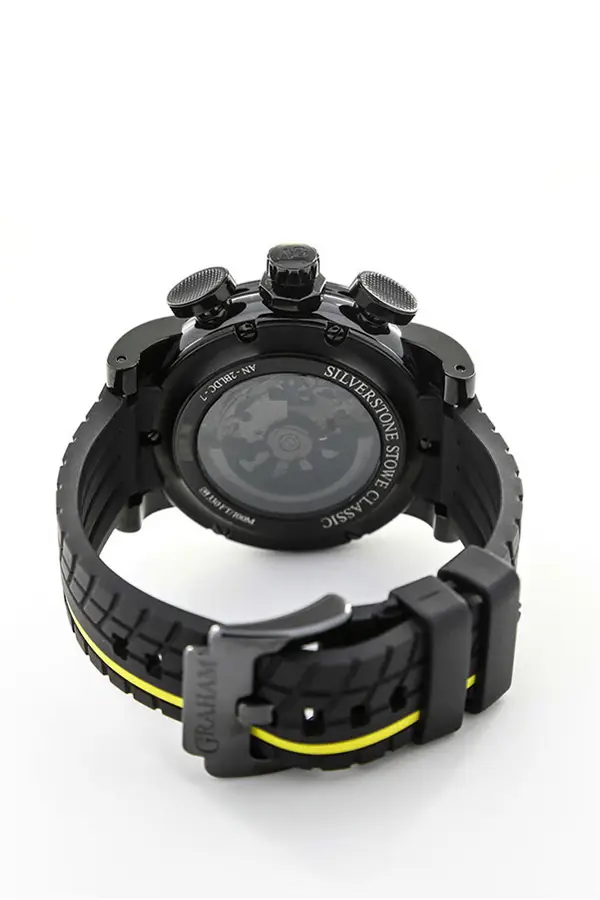 Часы Graham Silverstone Stowe Racing — это динамичная и эффектная модель, вдохновленная миром автоспорта. Прочный круглый корпус диаметром 48 мм выполнен из нержавеющей стали с черным PVD-покрытием, что придает часам спортивный вид и повышенную износостойкость. Важным элементом дизайна является также керамический безель, подчеркивающий гоночный характер модели.