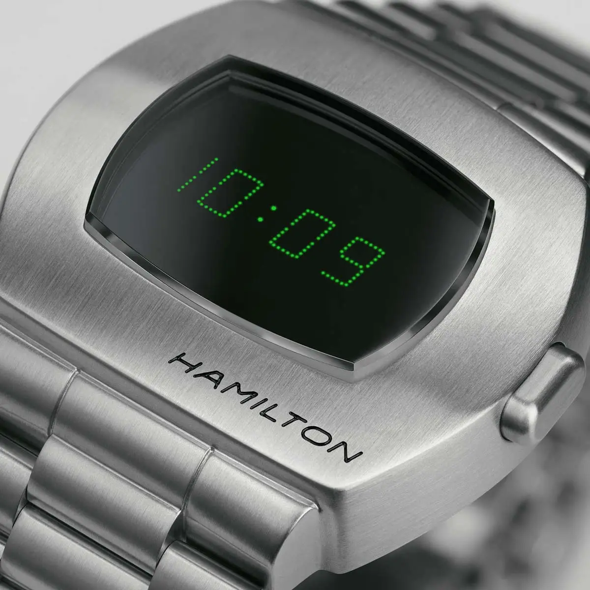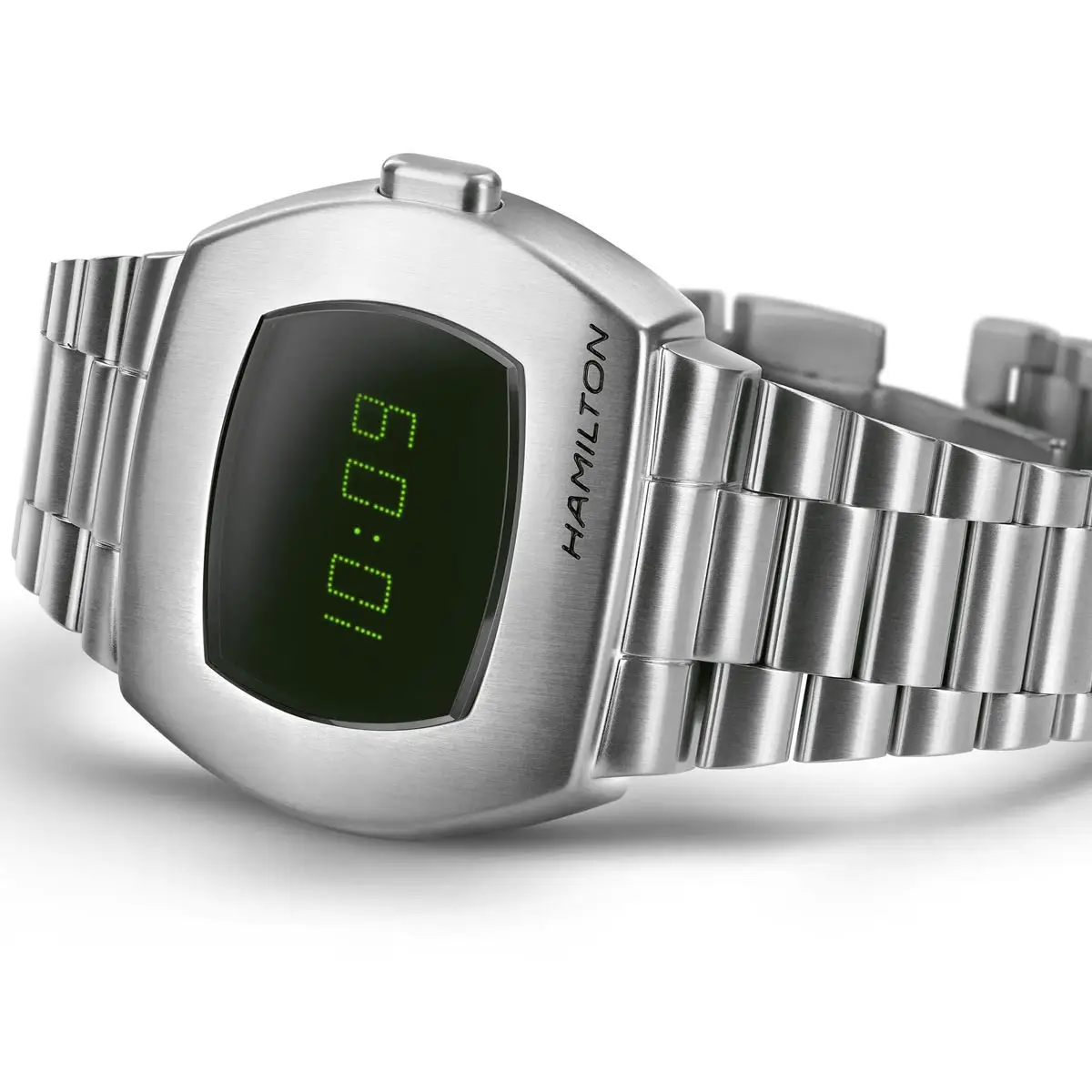 Hamilton American Classic PSR Digital Quartz H52414131 — это возрождение культового дизайна цифровых часов 1970-х годов в современном исполнении с улучшенной технологией. Корпус из нержавеющей стали размером 40,8 × 34,7 мм имеет характерную прямоугольную форму, вдохновленную первой в мире цифровой моделью Pulsar.