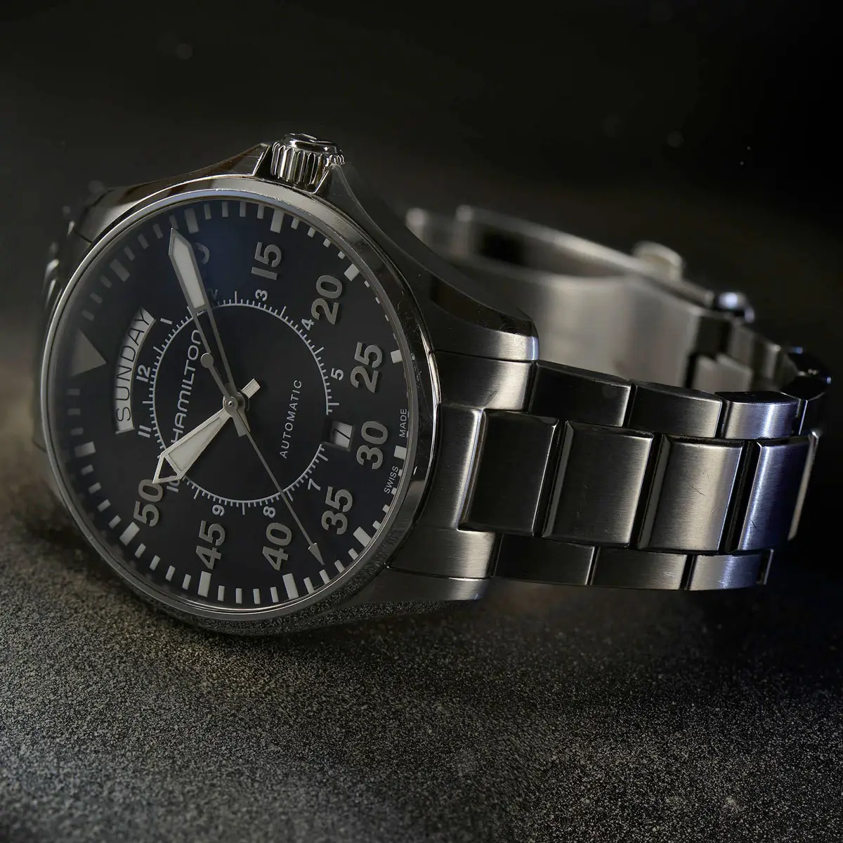 Модели Khaki Aviation отличаются превосходной разборчивостью, прочной конструкцией и точными механизмами. Есть как классические трехстрелочные модели, так и часы с такими усложнениями, как GMT, хронограф, день и дата, измерение высоты над уровнем моря. Корпуса часто изготавливаются из стали или титана, дополняются характерными заводными головками и циферблатами, вдохновленными бортовыми приборами.