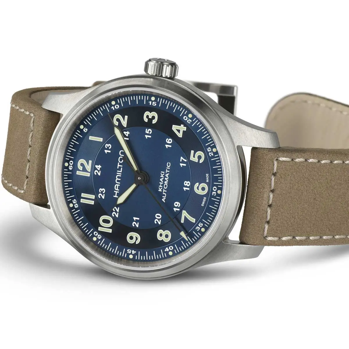 Отличительной особенностью часов Khaki Field является чистый циферблат с жирными арабскими цифрами, 24-часовой шкалой и люминесцентными стрелками. Они представлены в различных размерах и дизайне - от механических моделей с ручным заводом до автоматических и кварцевых вариантов. Корпуса часто изготавливаются из стали с матовой отделкой, дополняются текстильными, кожаными или стальными браслетами, устойчивыми к повседневному износу.