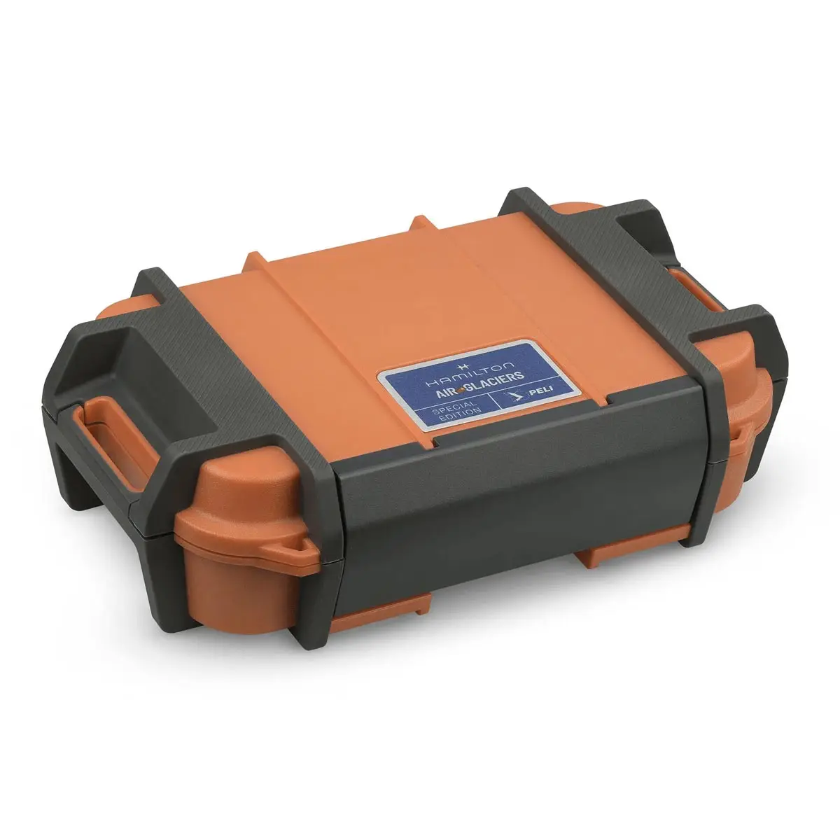 Hamilton Khaki Aviation Pilot Day Date Auto Air-Glaciers Edition H64655941 — это авиационные часы, созданные в сотрудничестве со швейцарской спасательной службой Air-Glaciers. Модель сочетает функциональность, лёгкость и надёжность в самых суровых условиях. Круглый корпус диаметром 42 мм выполнен из титана, что делает его исключительно лёгким и прочным, подходящим как для повседневной носки, так и для экстремальных ситуаций. Сапфировое стекло обеспечивает высокую читаемость и устойчивость к царапинам.