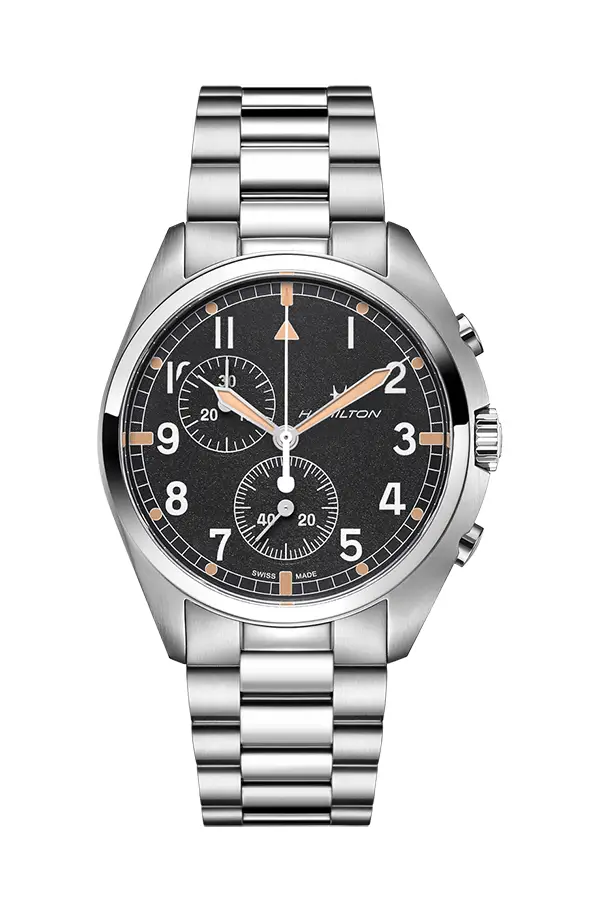 Модели Khaki Aviation отличаются превосходной разборчивостью, прочной конструкцией и точными механизмами. Есть как классические трехстрелочные модели, так и часы с такими усложнениями, как GMT, хронограф, день и дата, измерение высоты над уровнем моря. Корпуса часто изготавливаются из стали или титана, дополняются характерными заводными головками и циферблатами, вдохновленными бортовыми приборами.