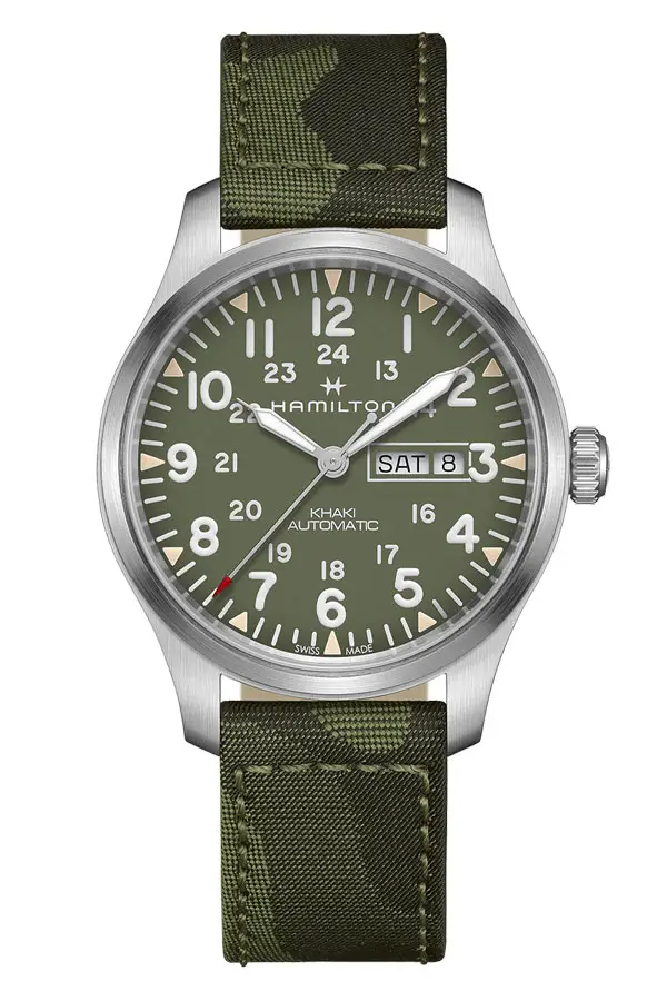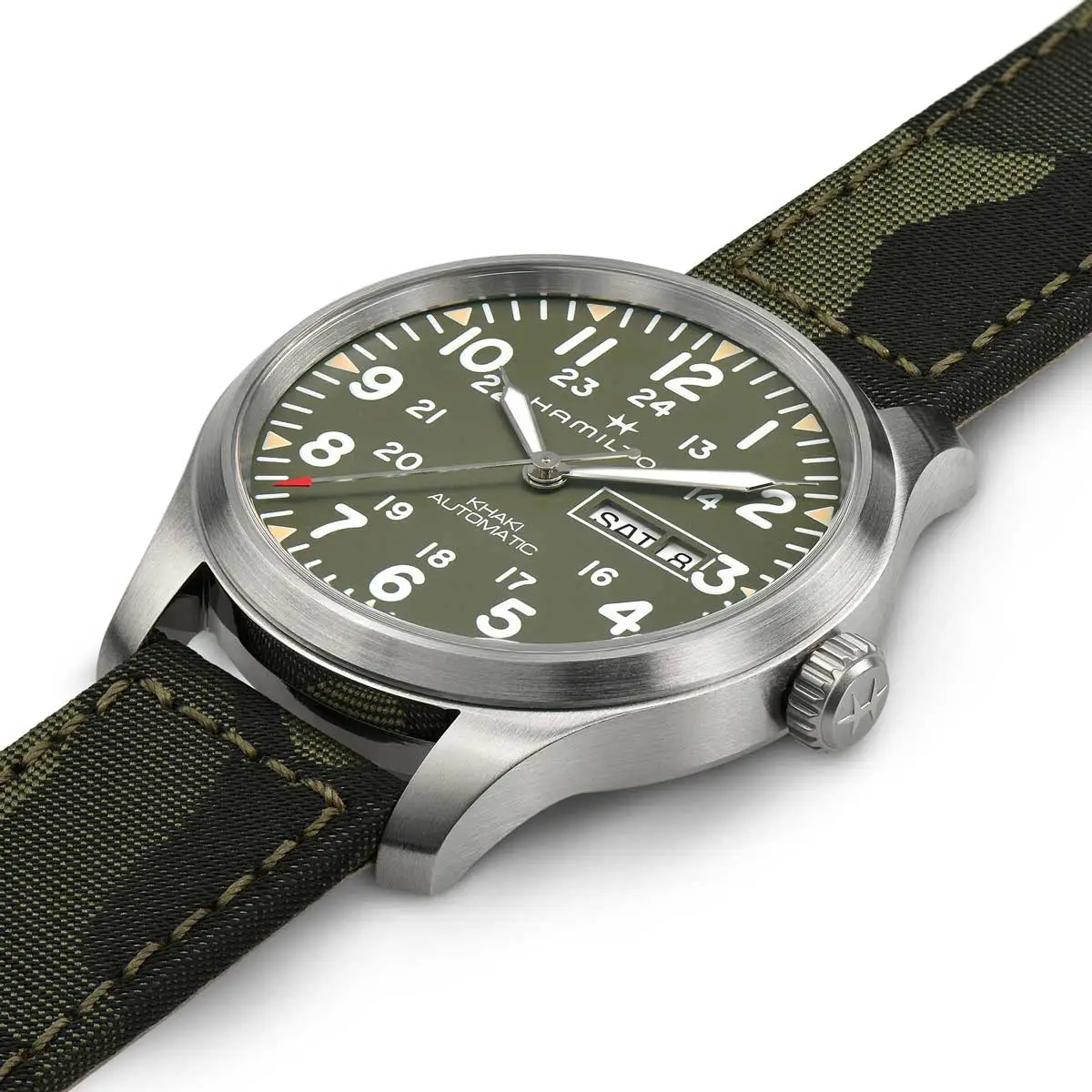Отличительной особенностью часов Khaki Field является чистый циферблат с жирными арабскими цифрами, 24-часовой шкалой и люминесцентными стрелками. Они представлены в различных размерах и дизайне - от механических моделей с ручным заводом до автоматических и кварцевых вариантов. Корпуса часто изготавливаются из стали с матовой отделкой, дополняются текстильными, кожаными или стальными браслетами, устойчивыми к повседневному износу.