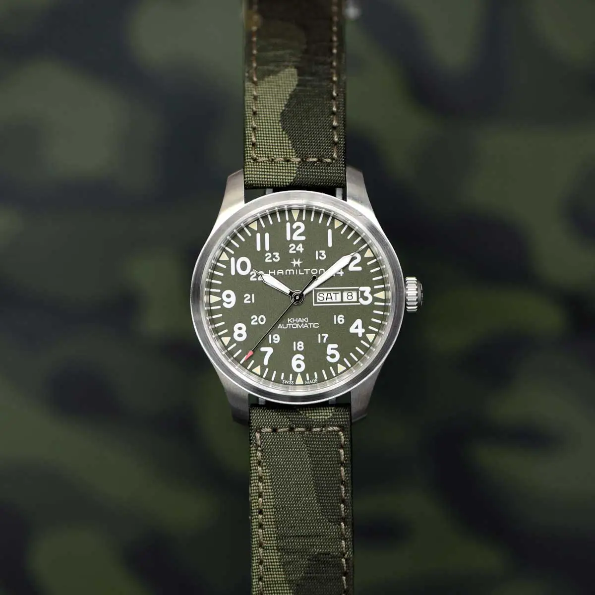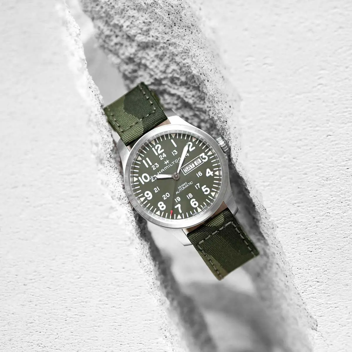 Khaki Field - одна из самых знаковых коллекций Hamilton, опирающаяся на богатое военное наследие марки. Вдохновленная оригинальными часами для американских солдат середины XX века, эта линия воплощает в себе долговечность, функциональность и легкость чтения - ценности, которые были ключевыми как на поле боя, так и в повседневной жизни.