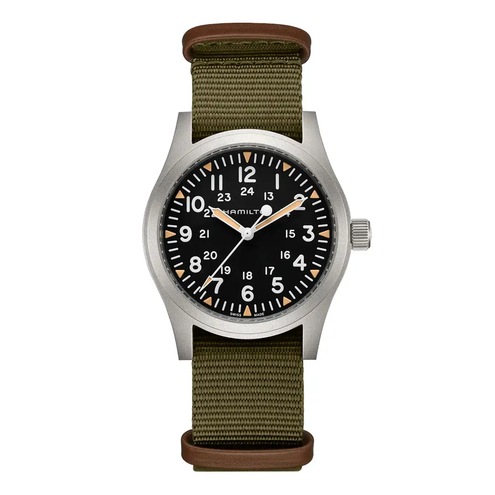 Khaki Field - одна из самых знаковых коллекций Hamilton, опирающаяся на богатое военное наследие марки. Вдохновленная оригинальными часами для американских солдат середины XX века, эта линия воплощает в себе долговечность, функциональность и легкость чтения - ценности, которые были ключевыми как на поле боя, так и в повседневной жизни.