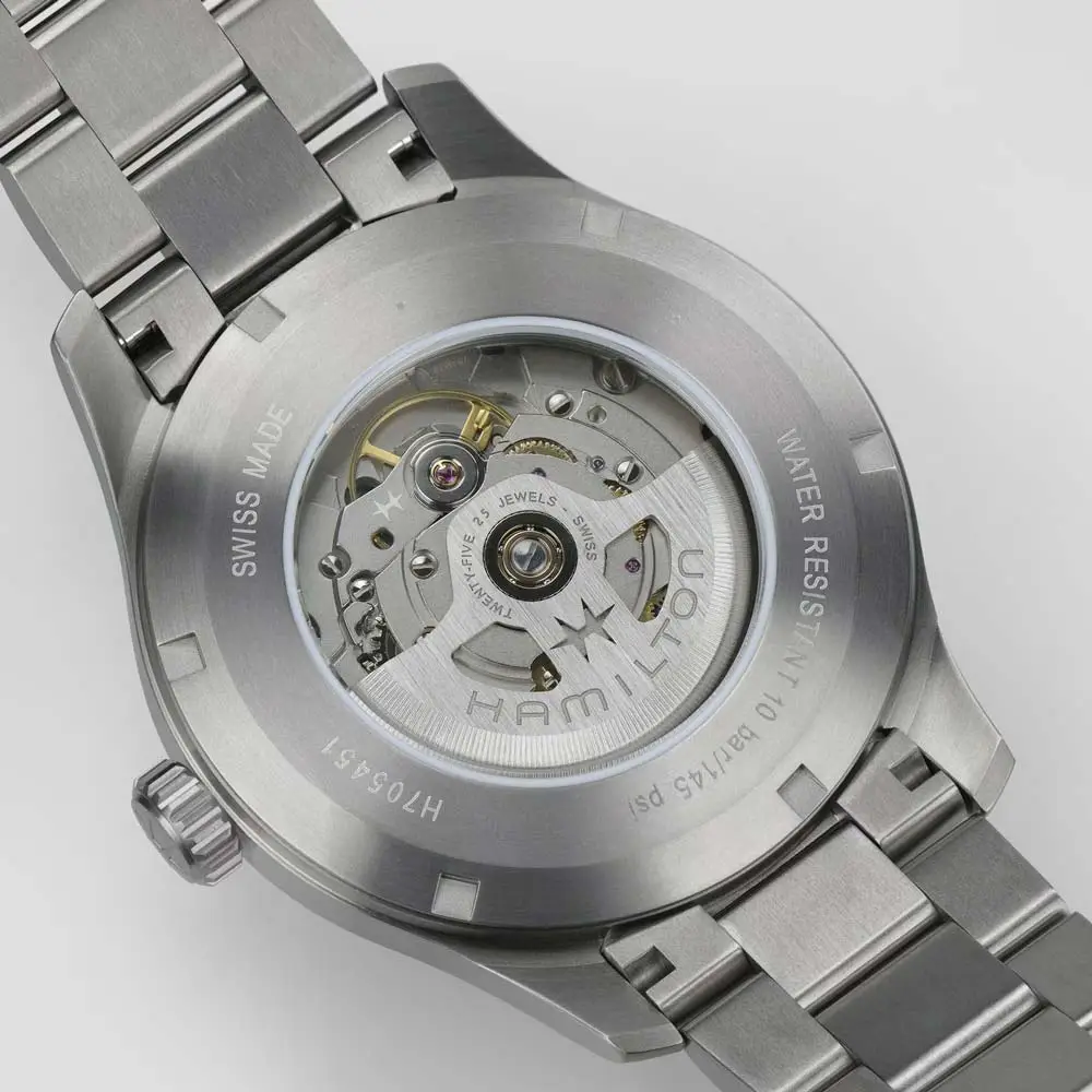 Сердцем часов является автоматический механизм H-10 с запасом хода до 80 часов, оснащенный современной антимагнитной спиралью Nivachron™. Прозрачный сапфировый циферблат позволяет рассмотреть высокоточный швейцарский механизм и подчеркивает техническое качество всей модели.