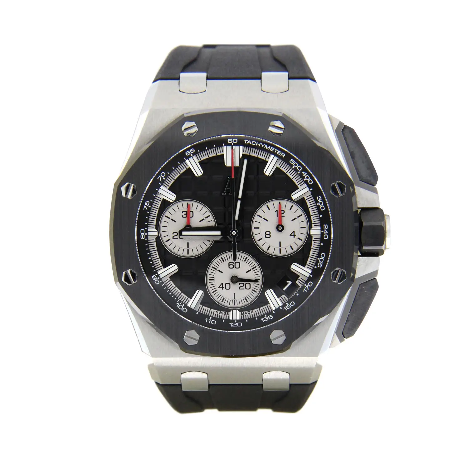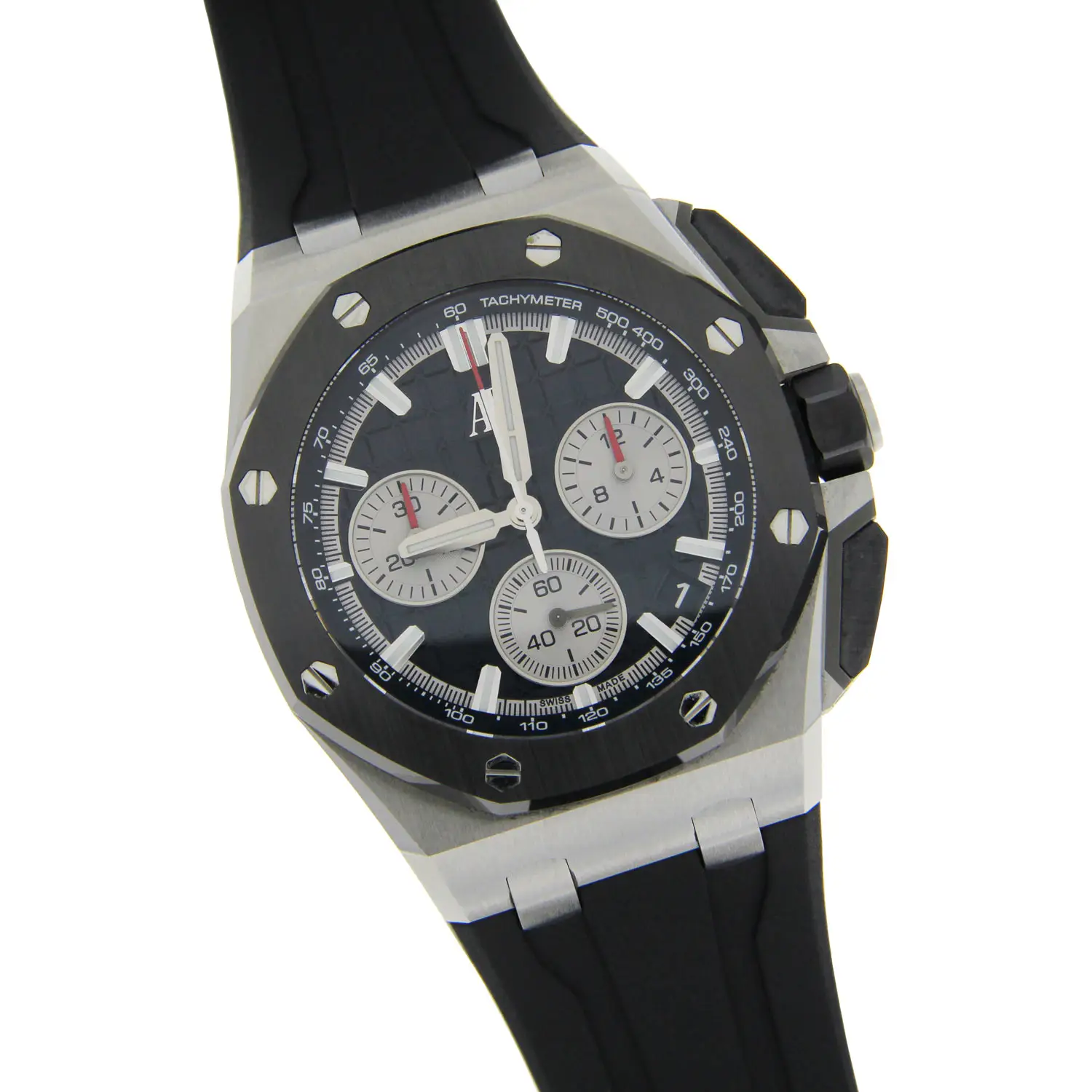 Внутри работает собственный автоматический калибр 4401 со встроенным хронографом, функцией flyback, колонным колесом и 72-часовым запасом хода. Прозрачный корпус из сапфирового стекла открывает вид на изысканно украшенный механизм и демонстрирует исключительные стандарты часового искусства мануфактуры Audemars Piguet.