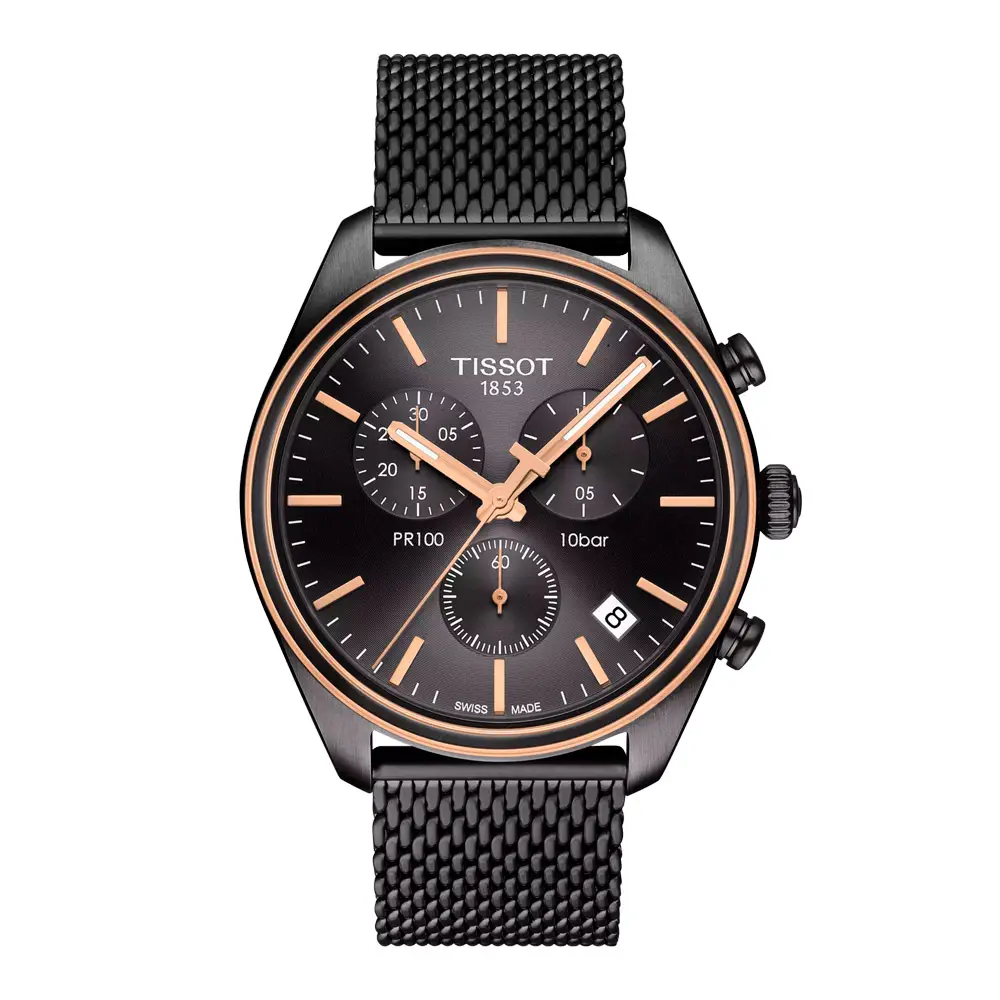 Двухцветный браслет из стали с розовым PVD-покрытием придаёт модели роскошный и элегантный характер. Tissot PR 100 Chronograph T101.417.23.061.00 — идеальный выбор для мужчин, ценящих стиль, надёжность и швейцарское мастерство в современном исполнении.