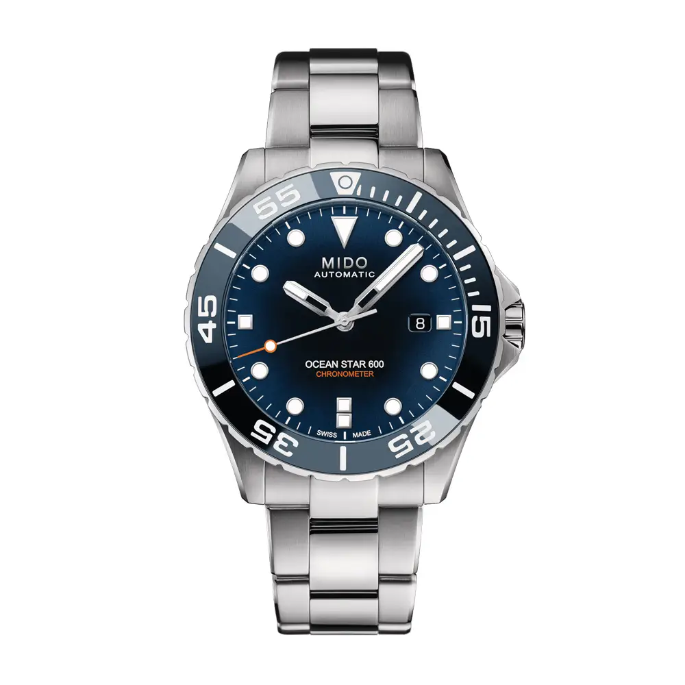 Часы Mido Ocean Star 600 Chronometer — это профессиональная модель для дайвинга, сочетающая прочную конструкцию, спортивный дизайн и швейцарскую точность. Выразительный круглый корпус диаметром 43,5 мм выполнен из высококачественной нержавеющей стали и защищён прочным сапфировым стеклом, обеспечивающим идеальную читаемость и защиту в экстремальных условиях.