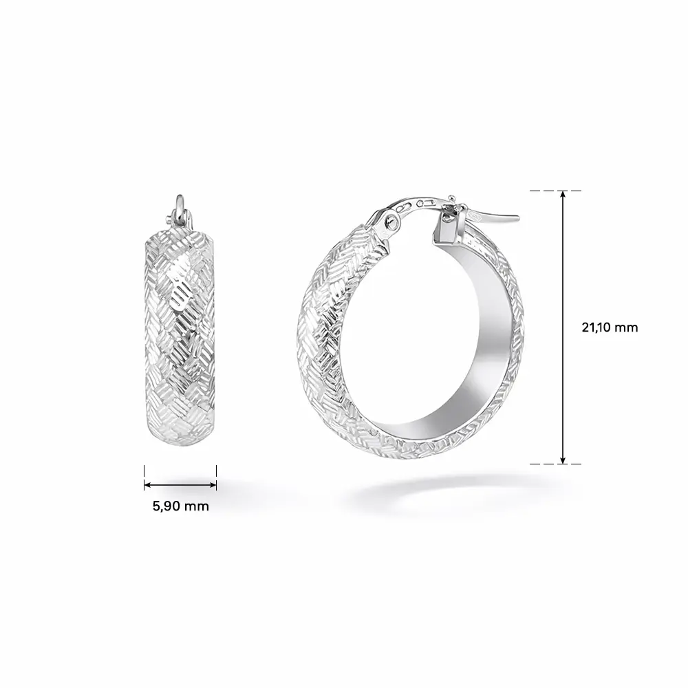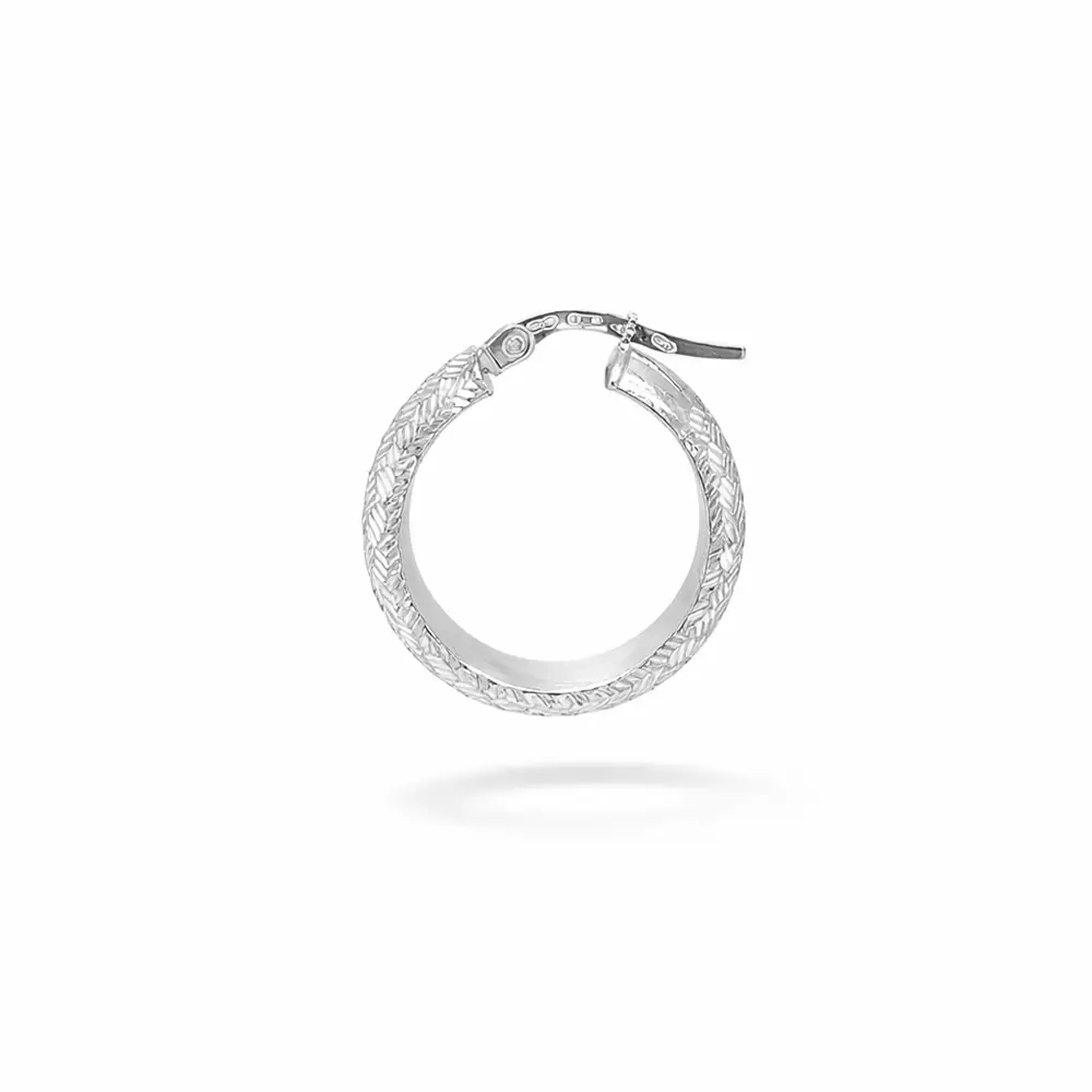 Кольцевые серьги из белого золота с гравированной поверхностью