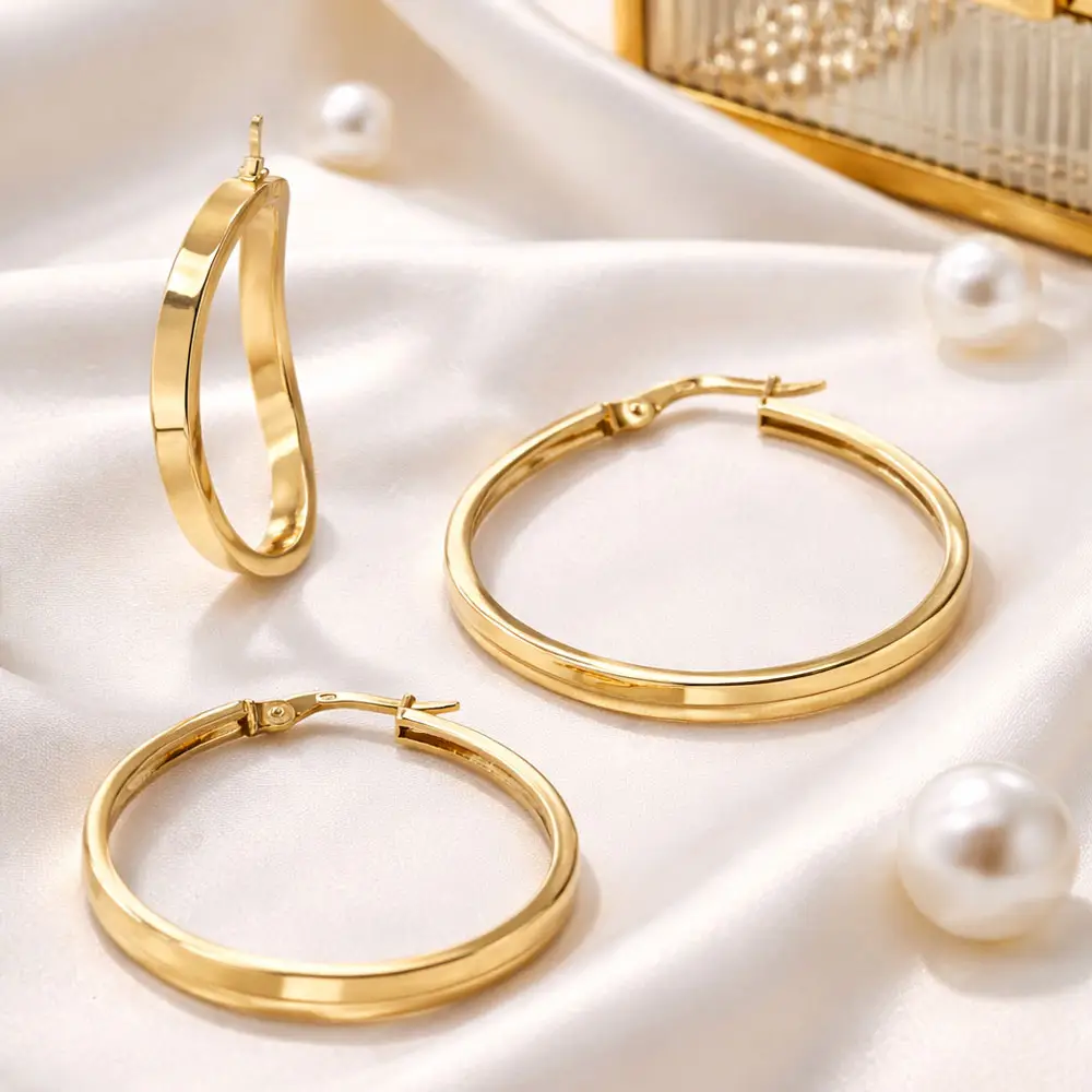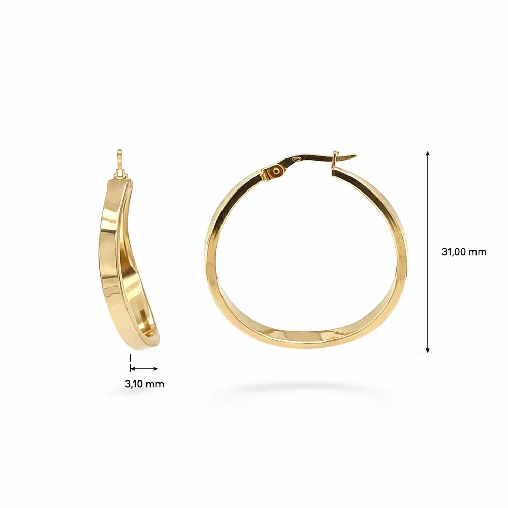 Благодаря классической форме и надёжной застёжке серьги удобны и практичны в носке. Диаметр около 31 мм и ширина профиля примерно 3,10 мм создают гармоничный баланс между сдержанностью и выразительностью.